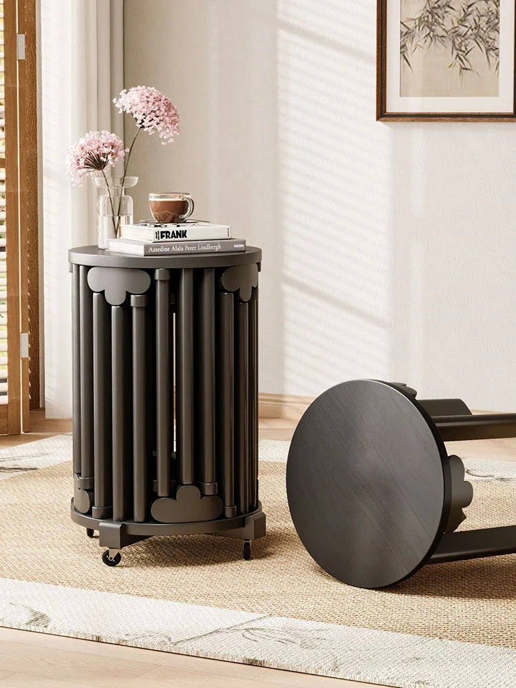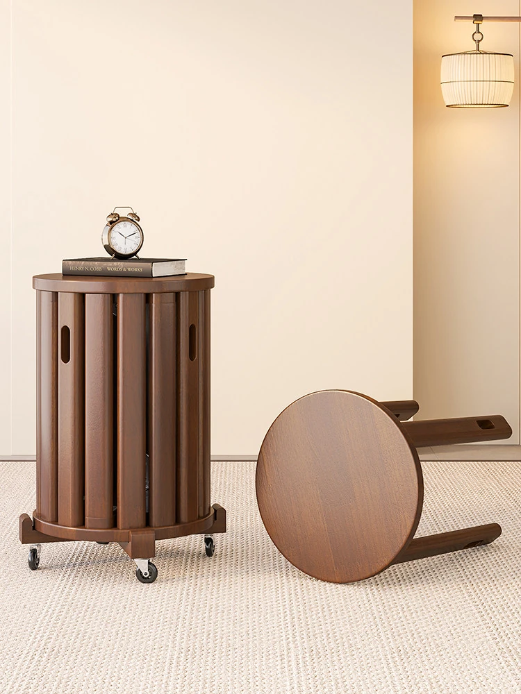 モダンな原木製の茶卓兼ダイニングテーブル!新中式デザインのスタッキングスツール、実用的でおしゃれ。省スペースで使いやすい、家族や友人との食事にぴったりな丸型スツール。