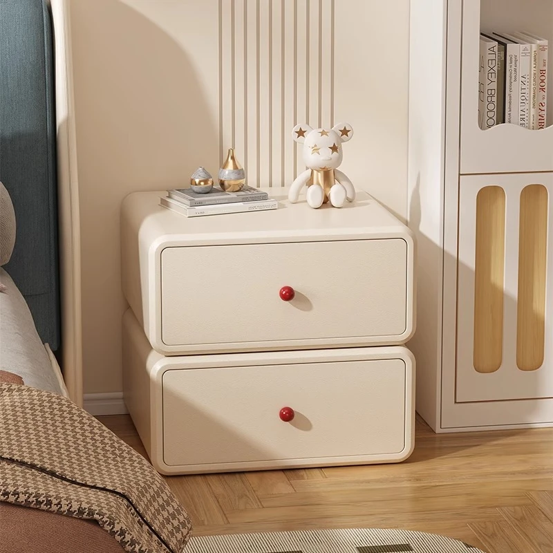 全実木製!人気のクリーム風デザイン、コンパクトな三段引き出し付きのレザーキャビネット。軽やかなモダンスタイルで、寝室にぴったりなミニサイズのナイトテーブル!