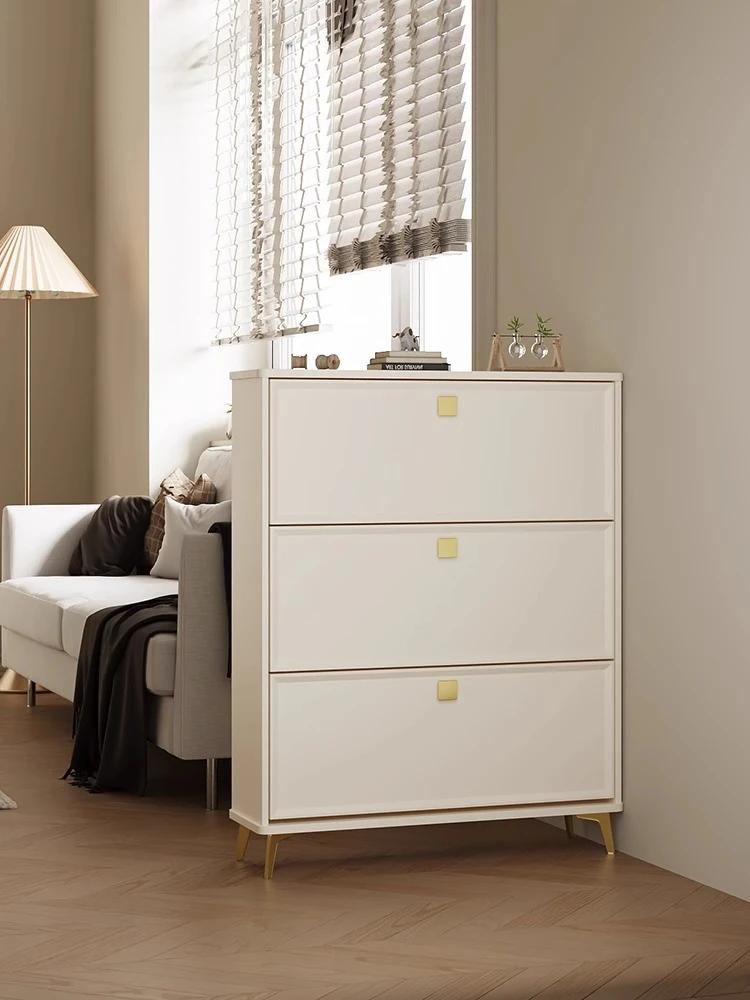 大容量の収納革命!クリーム風の超薄型シューズラック - 玄関にぴったりの一体型収納スペースを提供します。おしゃれで機能的なデザインで、靴をすっきり整理整頓!