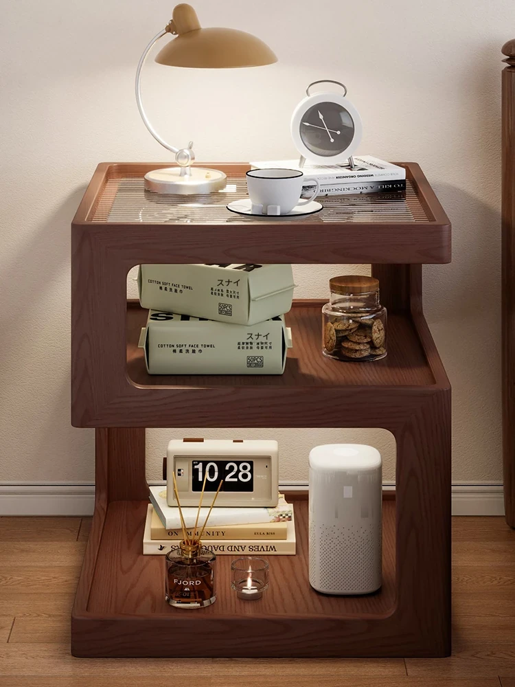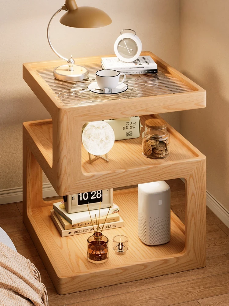 シンプルでモダンな無垢材のベッドサイドキャビネット|収納力抜群のクリエイティブなサイドテーブル|寝室の必需品、使いやすさとスタイルを両立したアイテム!