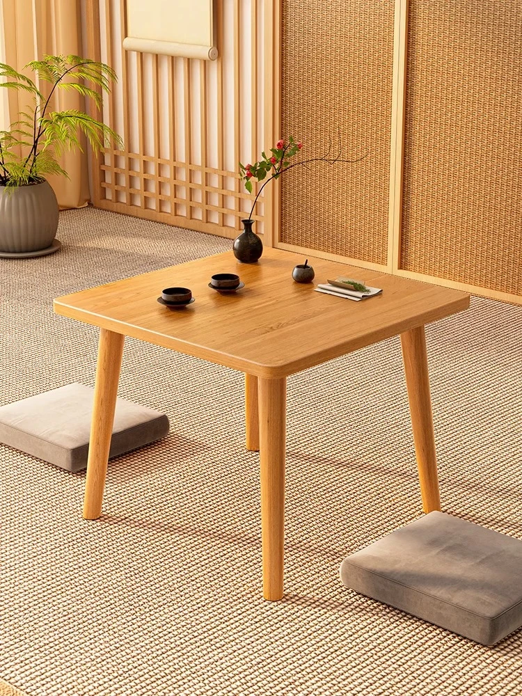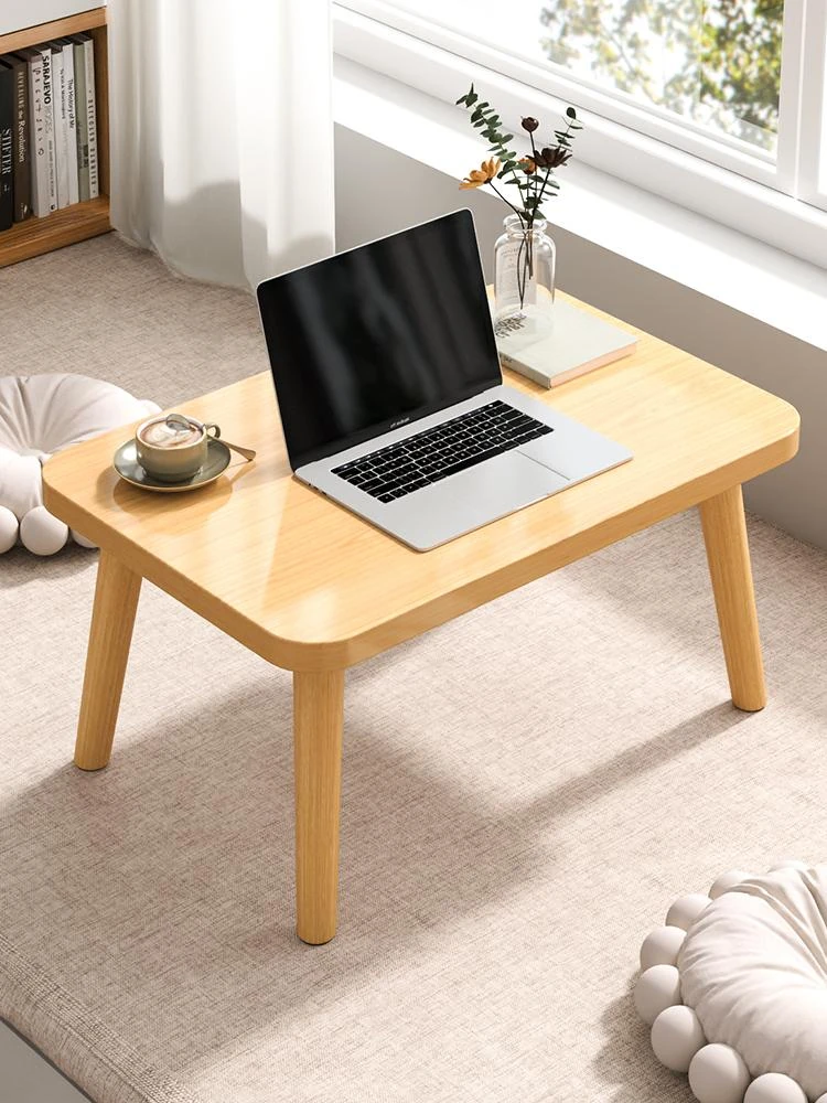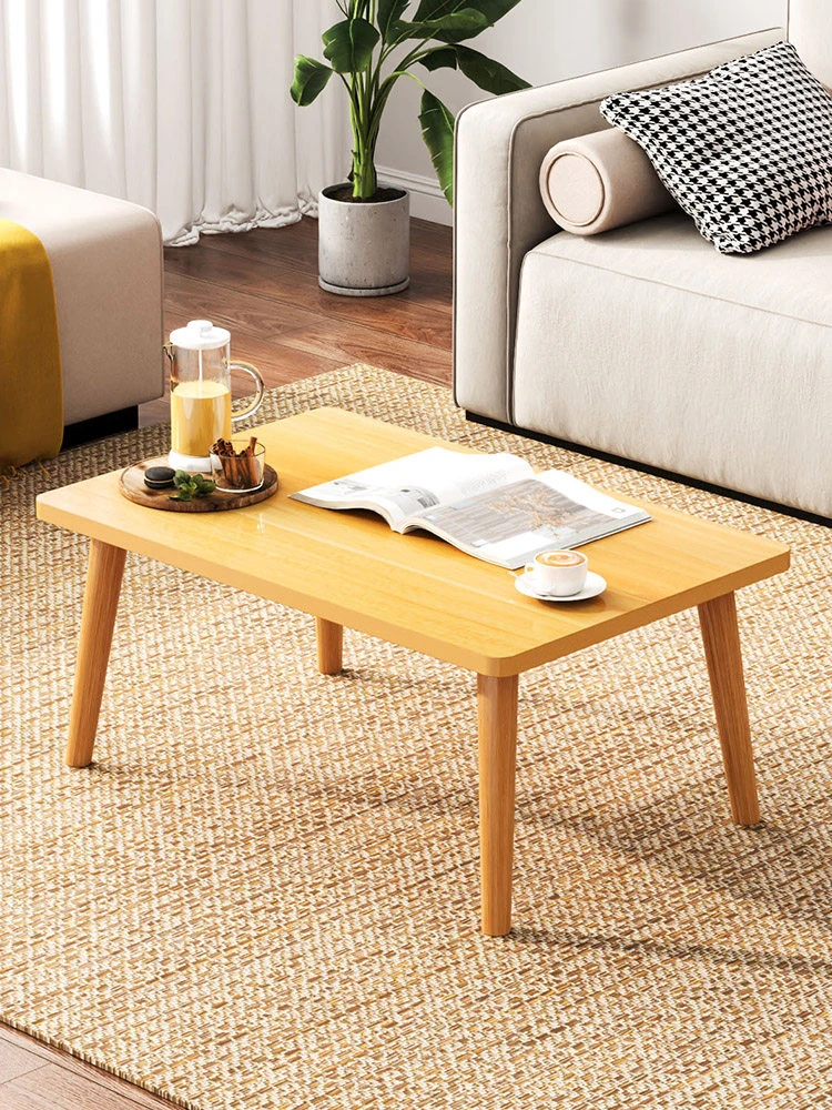 窓辺にぴったり!天然木製の小さなテーブル - 寝室やリビングに最適な低い茶卓。ソファや畳の横に置けるコンパクト設計。小スペースを有効活用して、おしゃれで快適な空間を演出!