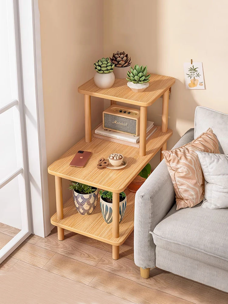 軽やかでスタイリッシュな小型2段サイドテーブル – リビングやバルコニーに最適なイタリアンデザインのベッドサイド収納ラック!小さなお部屋でも大活躍。
