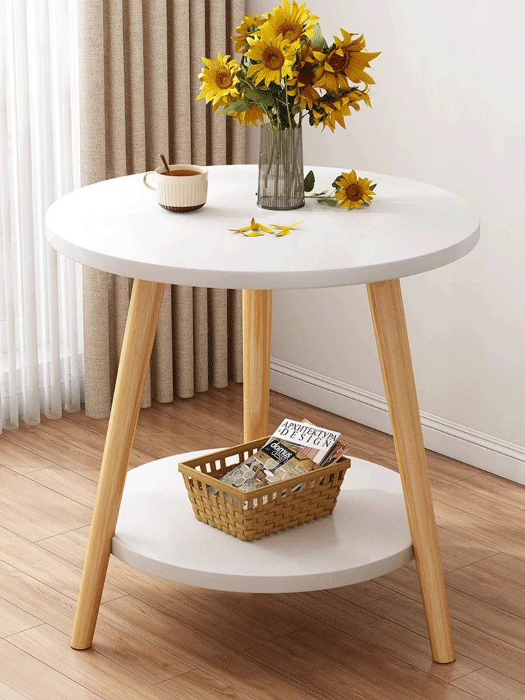 コンパクトなモダンデザインの小丸テーブル - リビングや寝室に最適!軽やかなラグジュアリー感を演出し、窓際や小さなスペースにぴったりな天然木製のシンプルなテーブル。おしゃれで機能的なライフスタイルを実現!