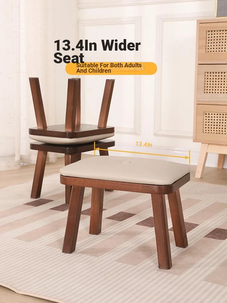 Solid Wood Small Stool - Versatile Low Bench for Home Use, Perfect for Living Room, Tea Table, Shoe Changing, or Entryway. Soft-Padded Square Stool for Added Comfort.