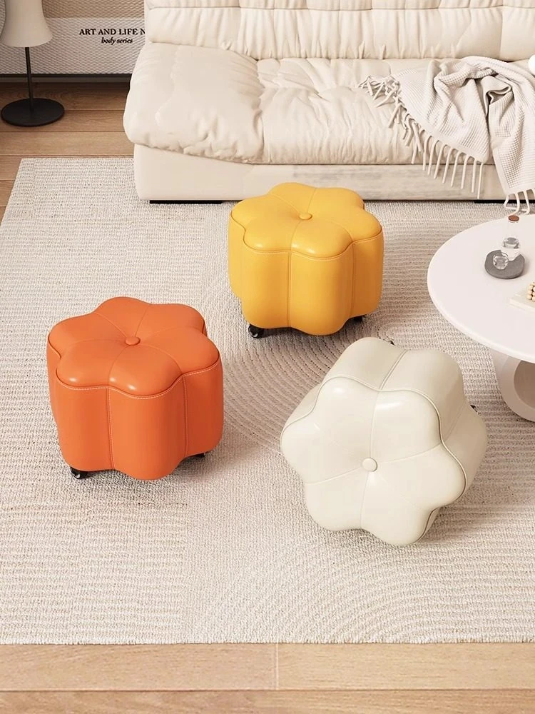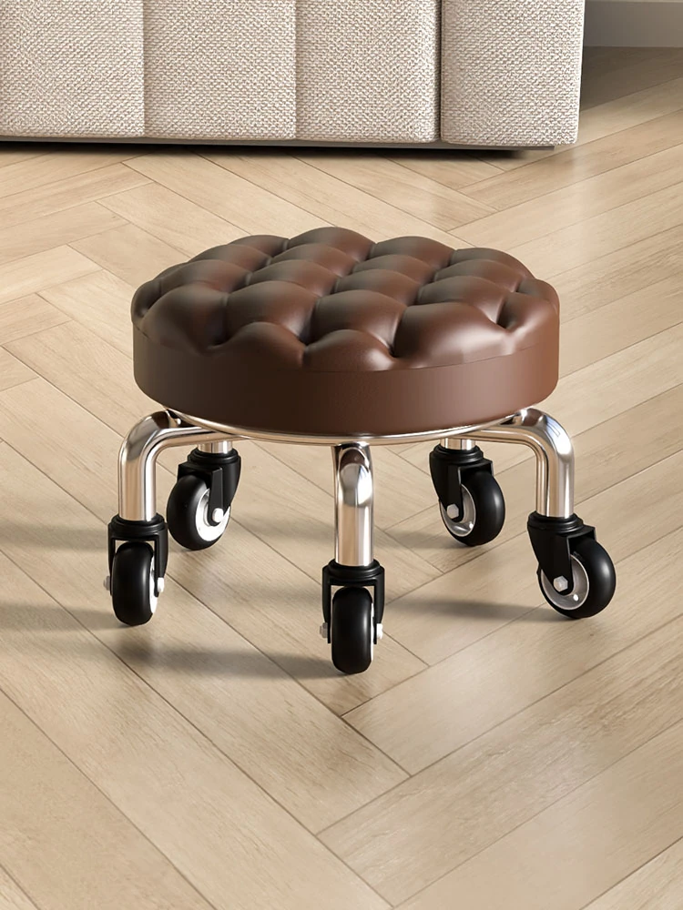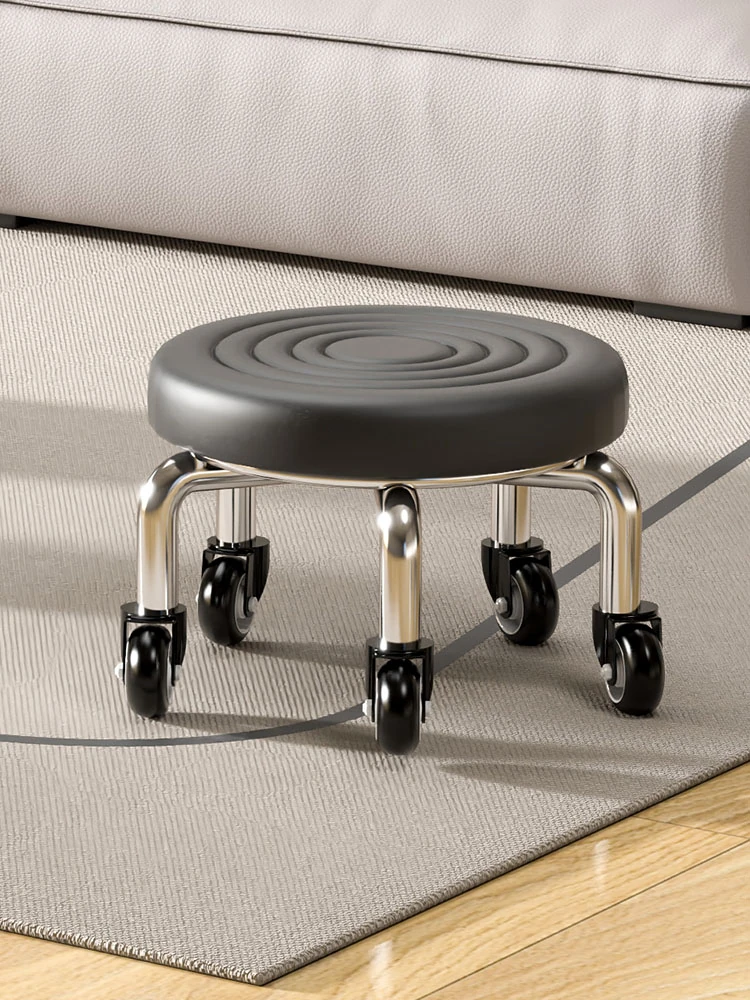 Stylish Home Mini Stool with Silent Wheels - Perfect for Living Room, Footrest, and Shoe Changing Bench - Soft Padded Seat for Ultimate Comfort