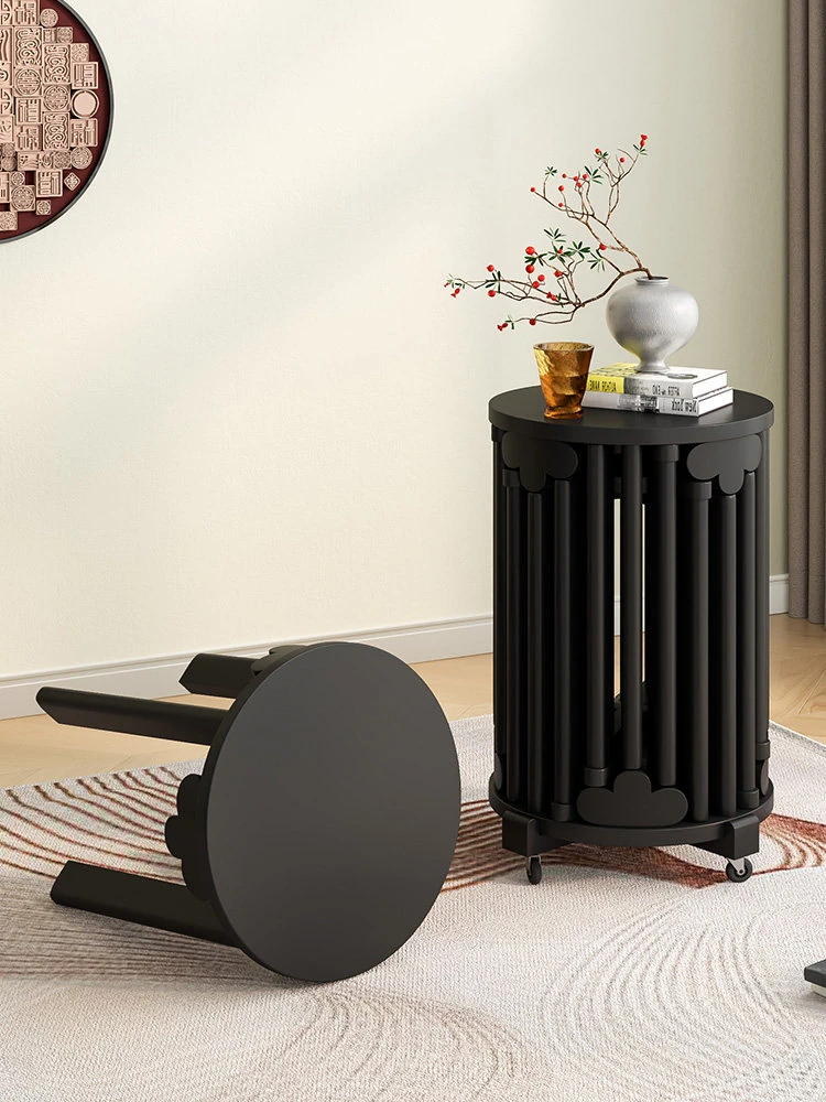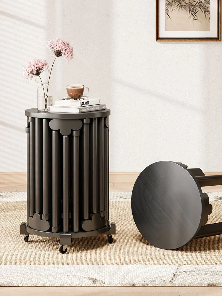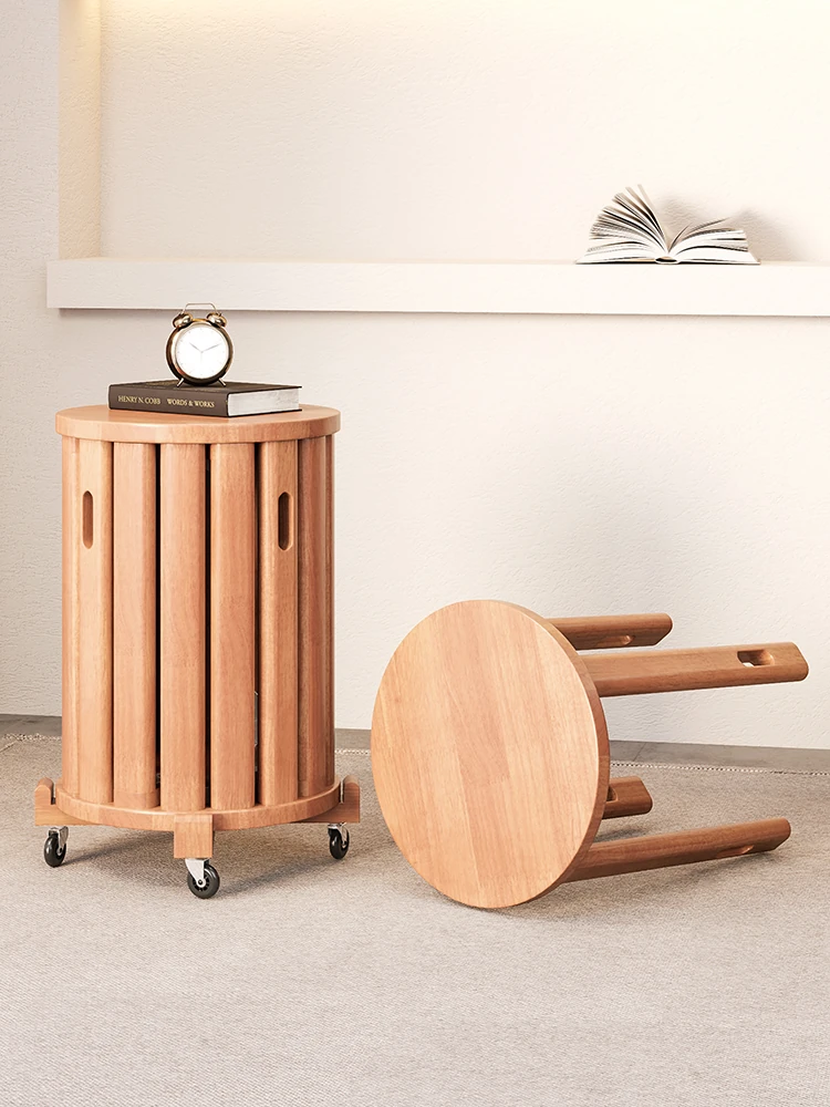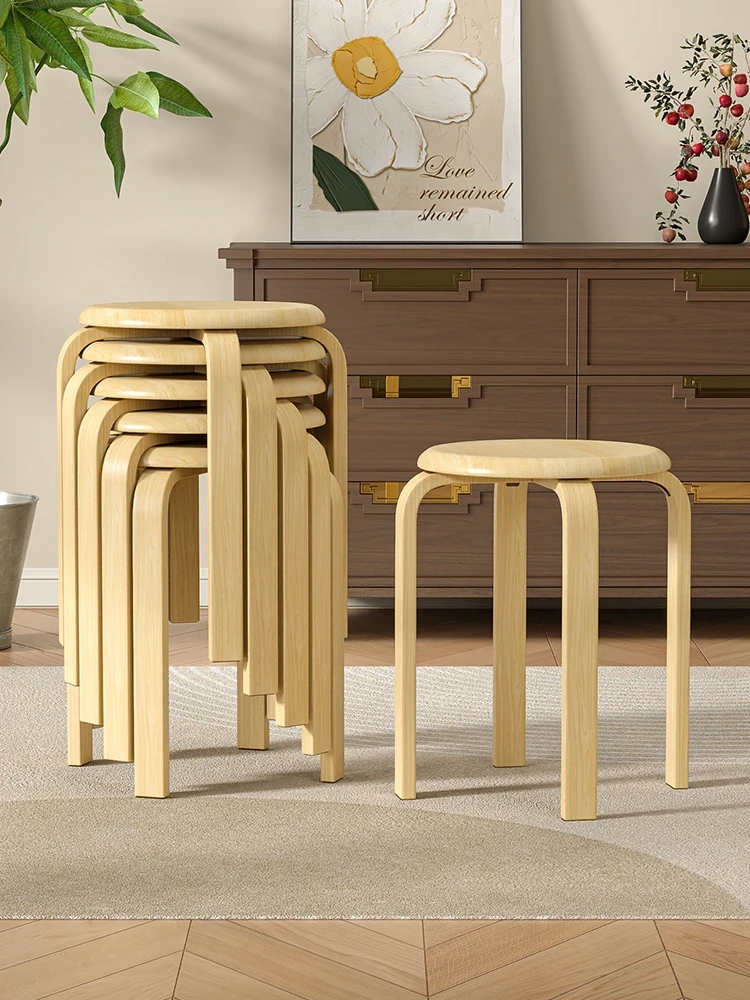 Modern Stacking Wooden Round Stool & Coffee Table - Space-Saving, Versatile Design for Dining & Home Use, New Chinese Style Natural Wood Finish