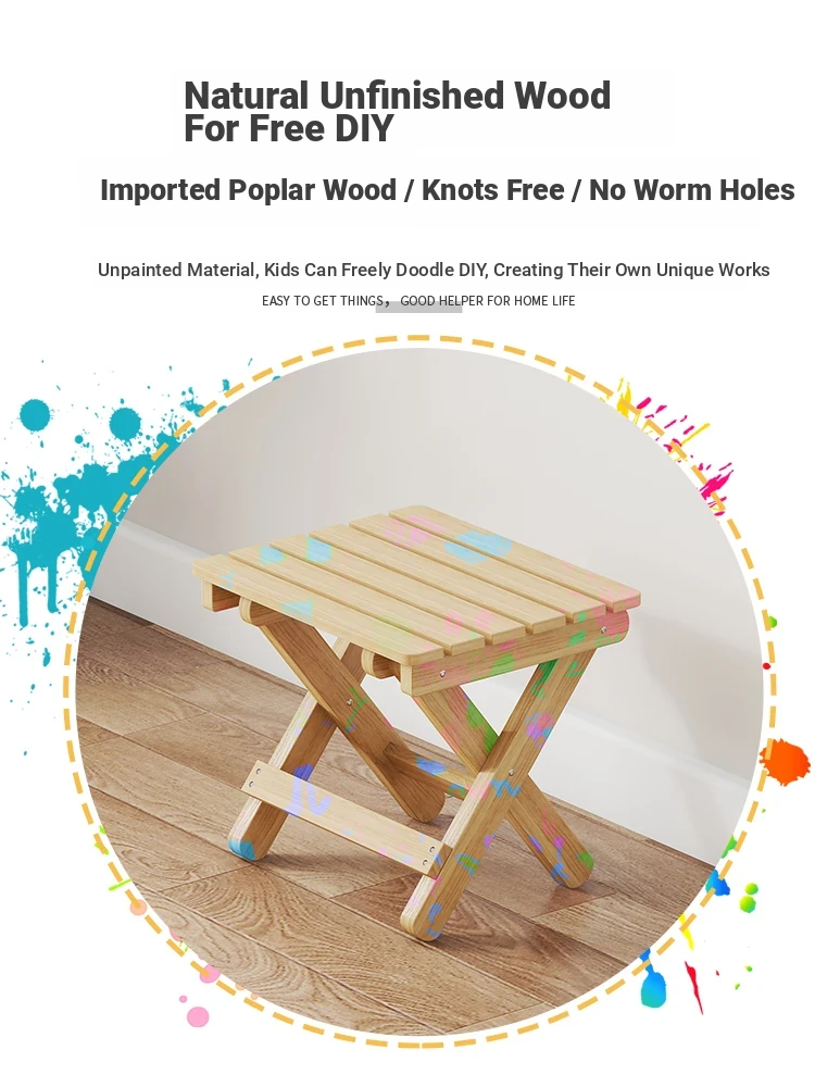 Portable Folding Stool - Simple Solid Wood Outdoor Chair for Home Use, Lightweight and Compact, Ideal for Changing Shoes or Relaxing Anywhere (Non-Plastic)
