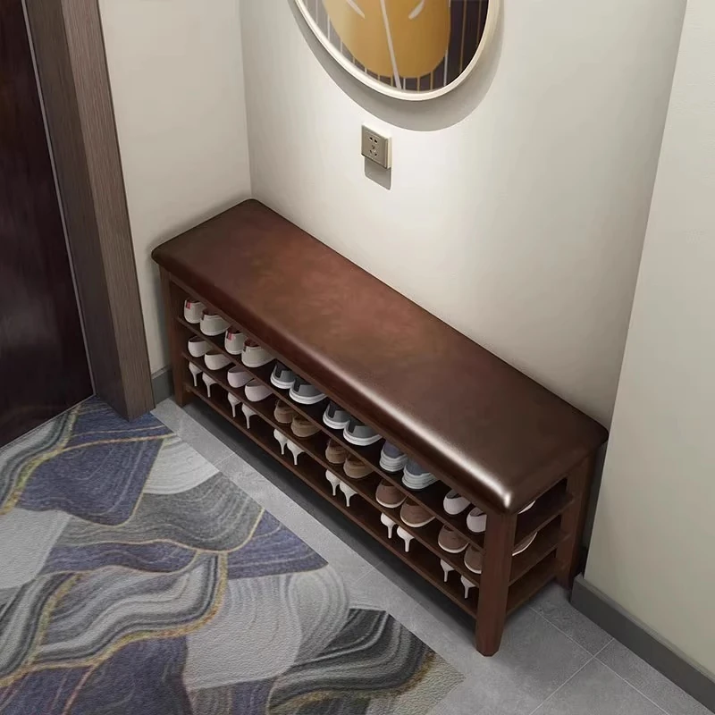 Minimalist Solid Wood Shoe Changing Bench for Home - Multi-Layer Storage Shoe Cabinet, Stylish Entryway Seating and Shoe Rack for Convenient Shoe Change at the Door