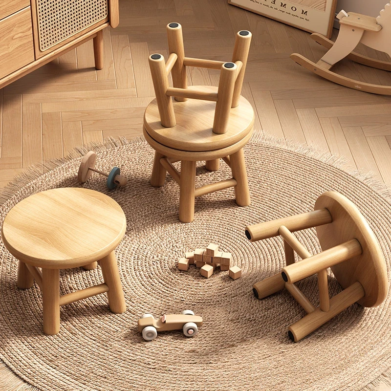 Solid Wood Oak Stool - Cute and Creative Thickened Low Round Chair for Kids - Ideal for Home Use as a Shoe Changing Bench