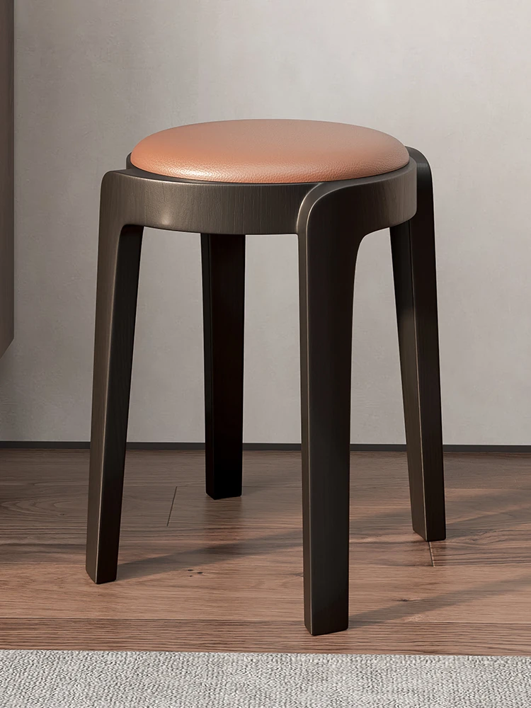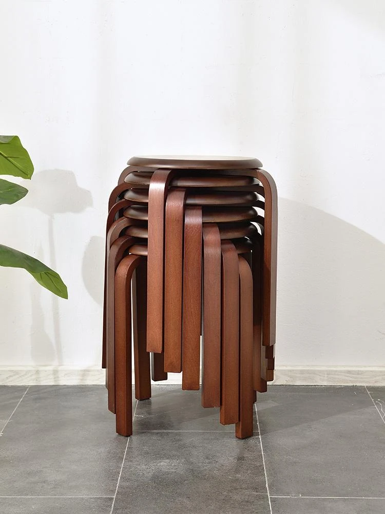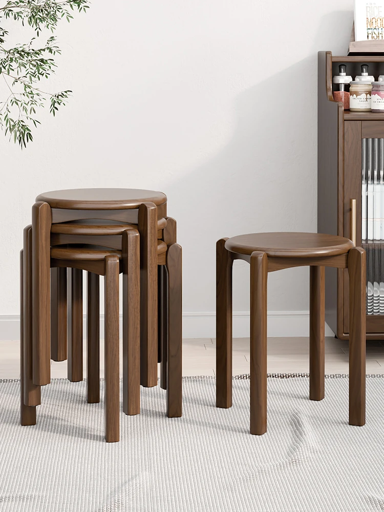 Modern Minimalist Solid Wood Round Stool - Stackable and Space-Saving High Bench for Dining Table, Living Room, and Chinese-Style Low Seating Solutions