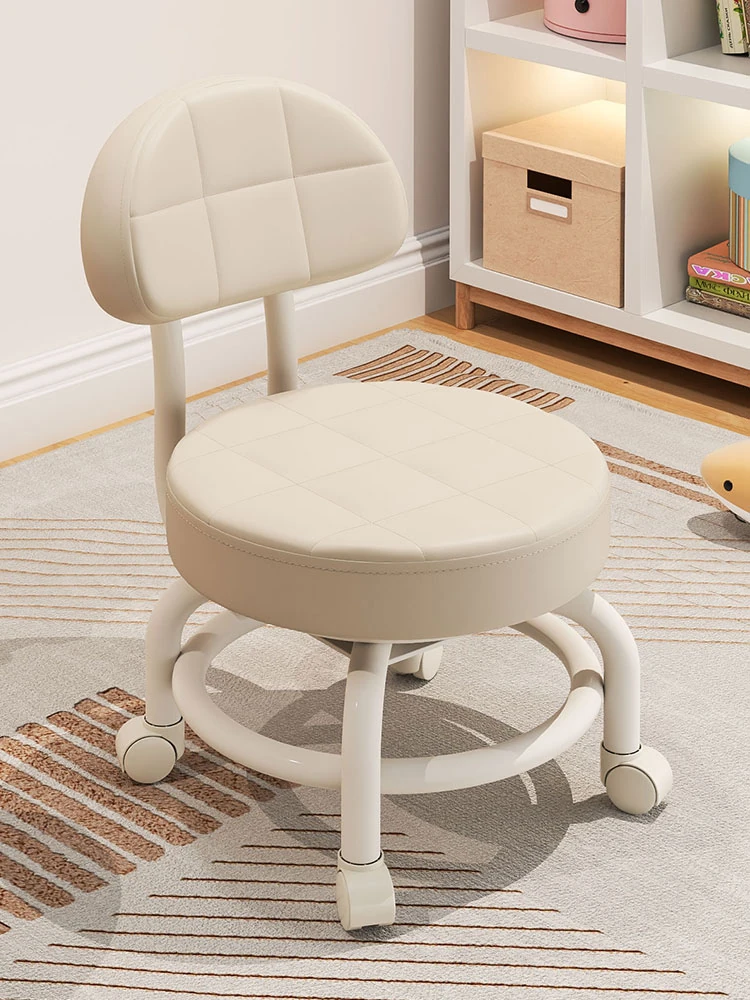 Children’s Rolling Stool with Casters - Versatile Kids' Chair for Easy Movement, Perfect for Home Use, Shoe Changing, and Seam Finishing, Compact Design with Backrest for Comfort and Stability.