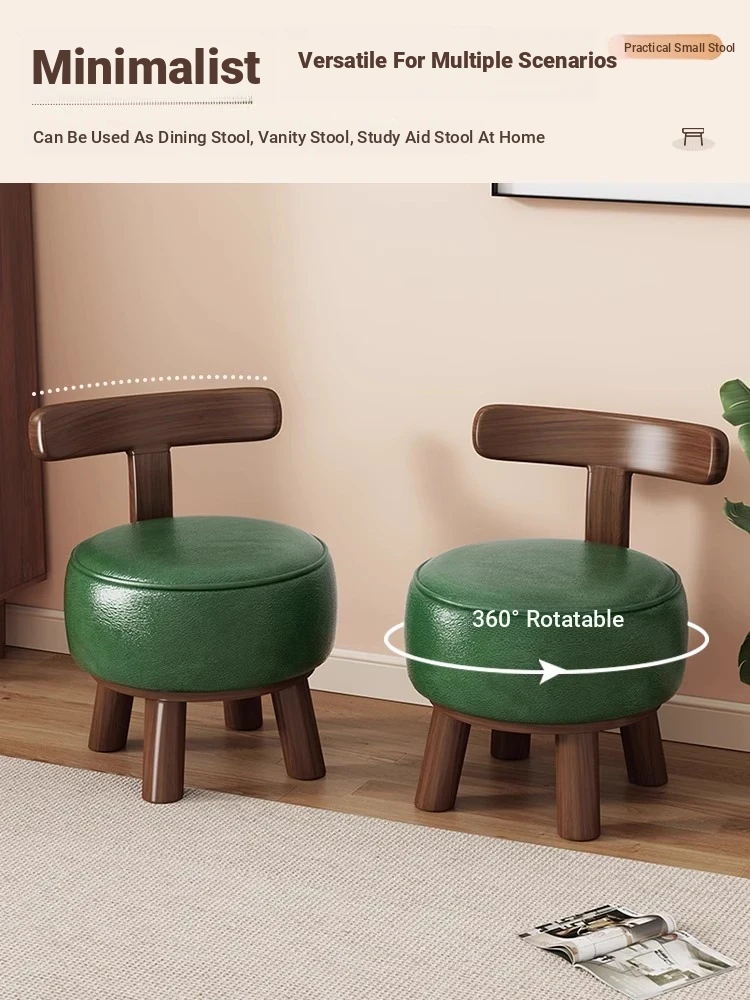 Rotatable Solid Wood Stool with Backrest - Versatile Low Chair for Home, Kids, and Living Room, Perfect for Sofa and Relaxation