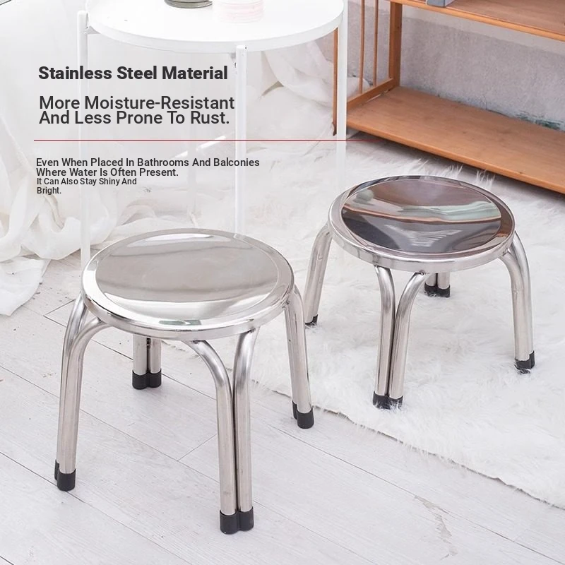 Modern Thickened Stainless Steel Round Stool - Minimalist Metal Four-Legged Chair for Living Room, Home, and Outdoor Use