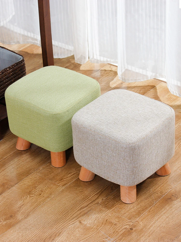 Stylish Solid Wood Shoe Bench - Creative Square Fabric Stool for Home Use, Perfect as a Sofa Ottoman, Coffee Table Seat, or Low Stool for Easy Shoe Changing!