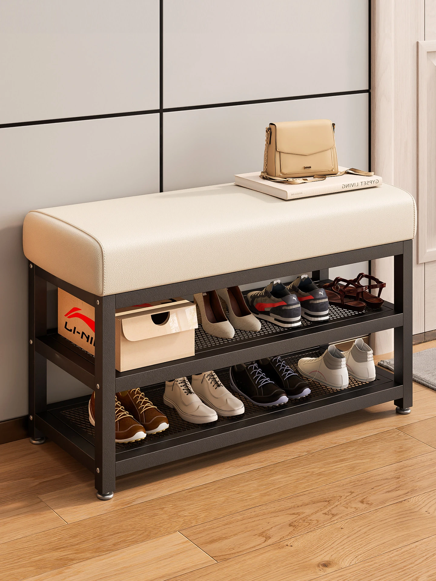 Shoe Changing Bench - Stylish Home Entryway Seating and Storage, Elegant Iron Frame Shoe Rack for Easy Shoe Changing at the Door