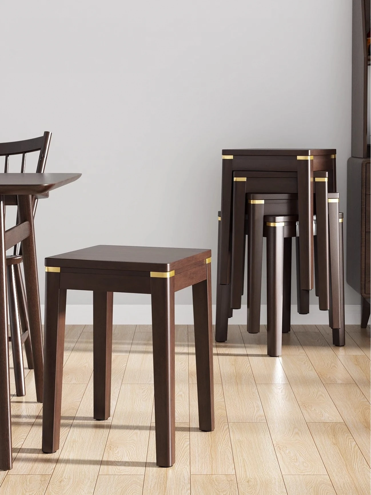 Space-Saving Stackable Stool - Versatile Solid Wood Bench for Living Room and Dining Area, Ideal for Chinese Style Decor, Perfect as a Round or Square Stool for Extra Seating