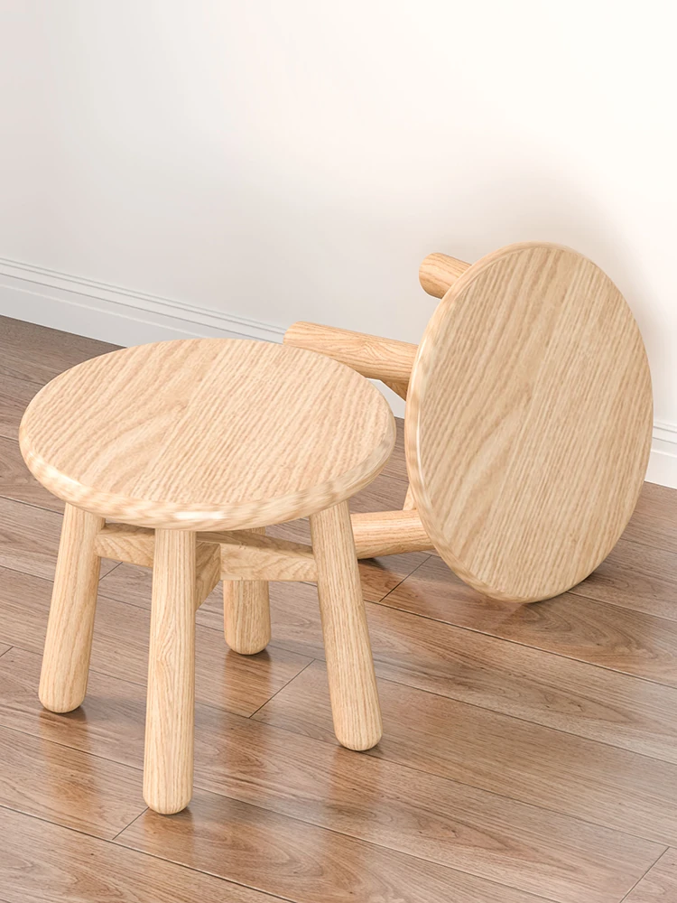 Modern Minimalist Solid Wood Stool - Versatile Wooden Bench for Home Use, Perfect as a Small Round Footrest or Shoe Changing Stool in Your Living Room.