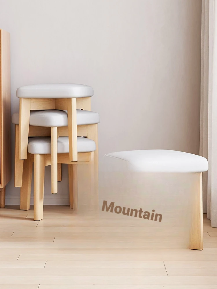 Modern Minimalist Wooden Stools for Living Room - Small Square Solid Wood Chairs for Dining, Stackable Soft-Padded Benches for Home Use