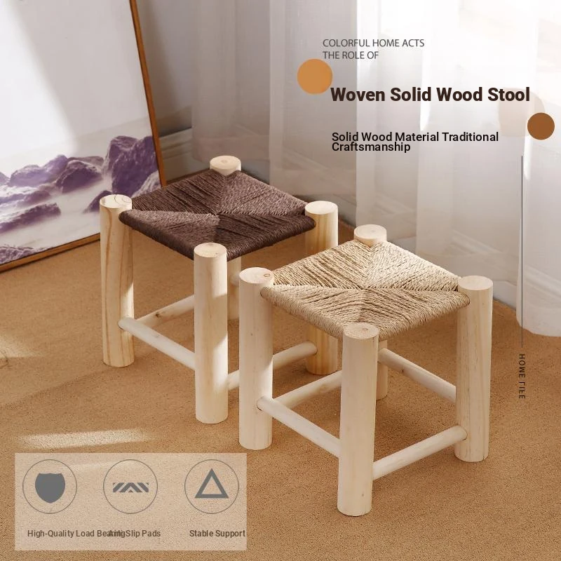 Handcrafted Nordic Style Wooden Stool - Stylish and Functional Woven Seat for Living Room, Perfect for Adults and Home Use, Compact Design Ideal for Any Space