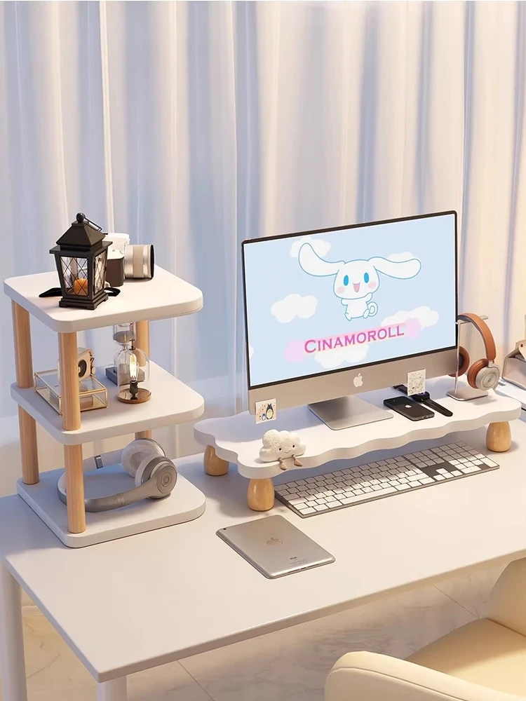 Adjustable Wooden Monitor Stand for Desktop - Ergonomic Desk Organizer and Laptop Holder, Perfect for Home Office Storage Solutions