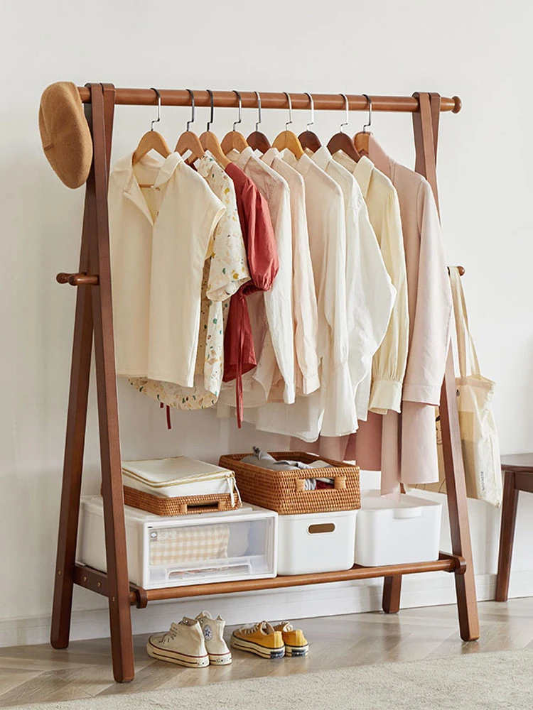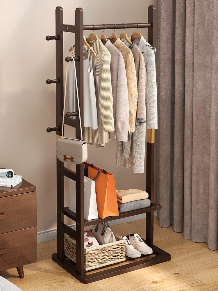 Solid Wood Free-Standing Clothes Rack - Stylish Bedroom Coat Hanger for Hanging Clothes and Bags, Perfect for Home Organization and Decor