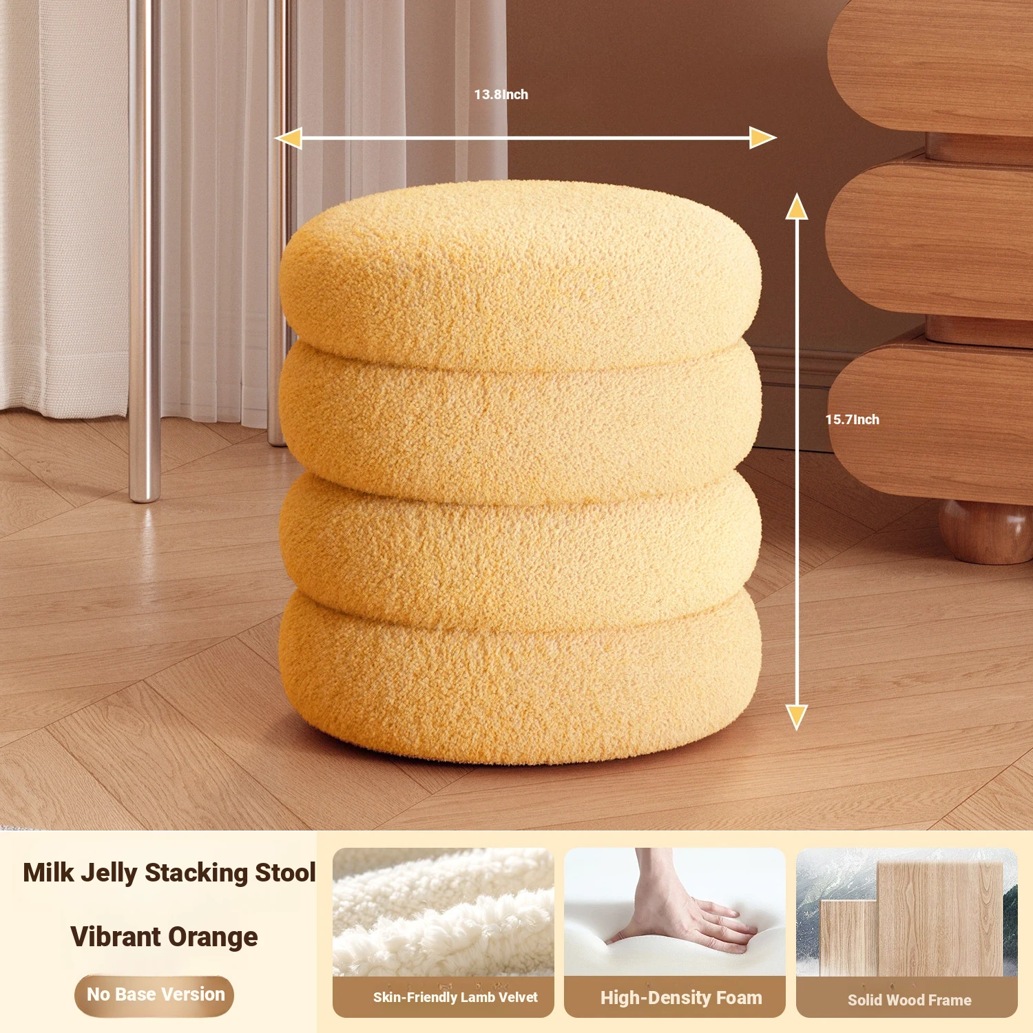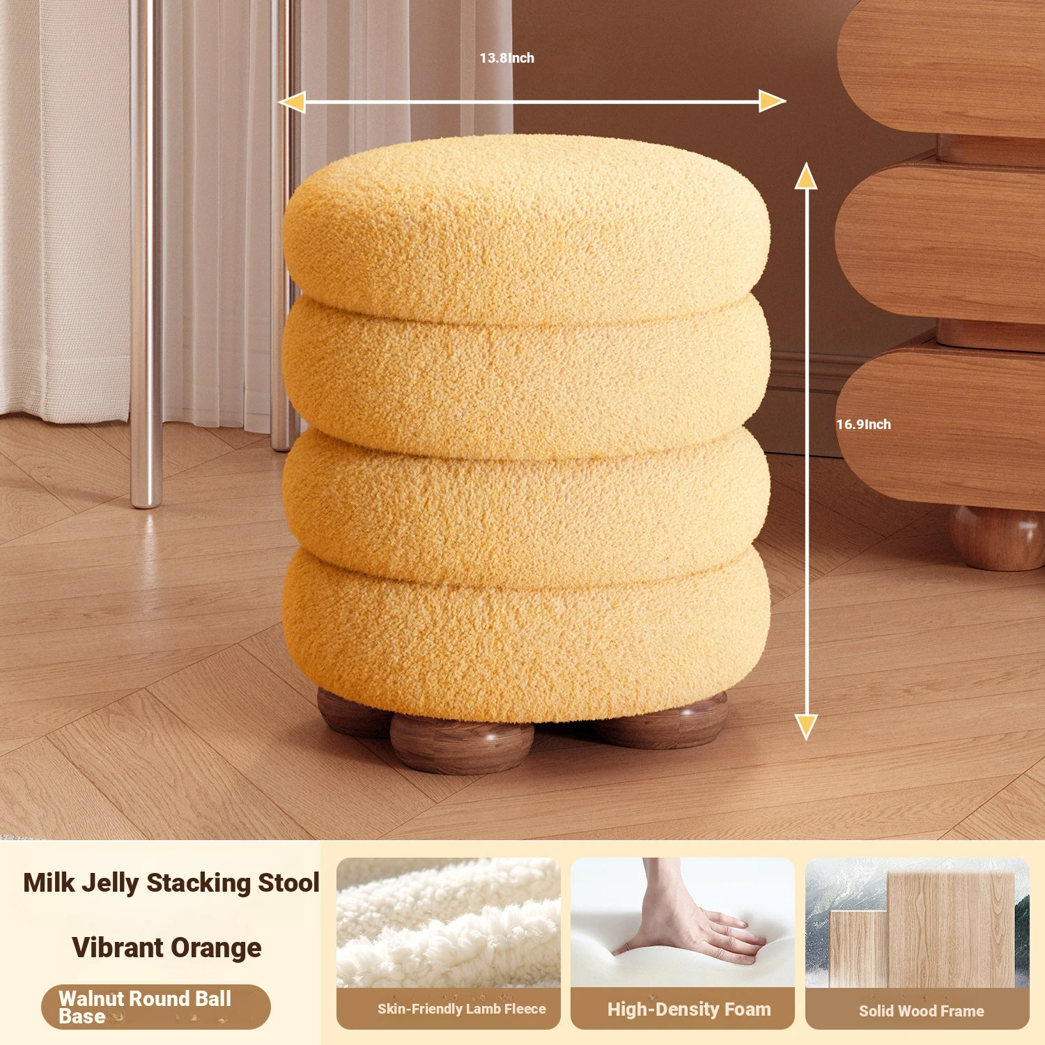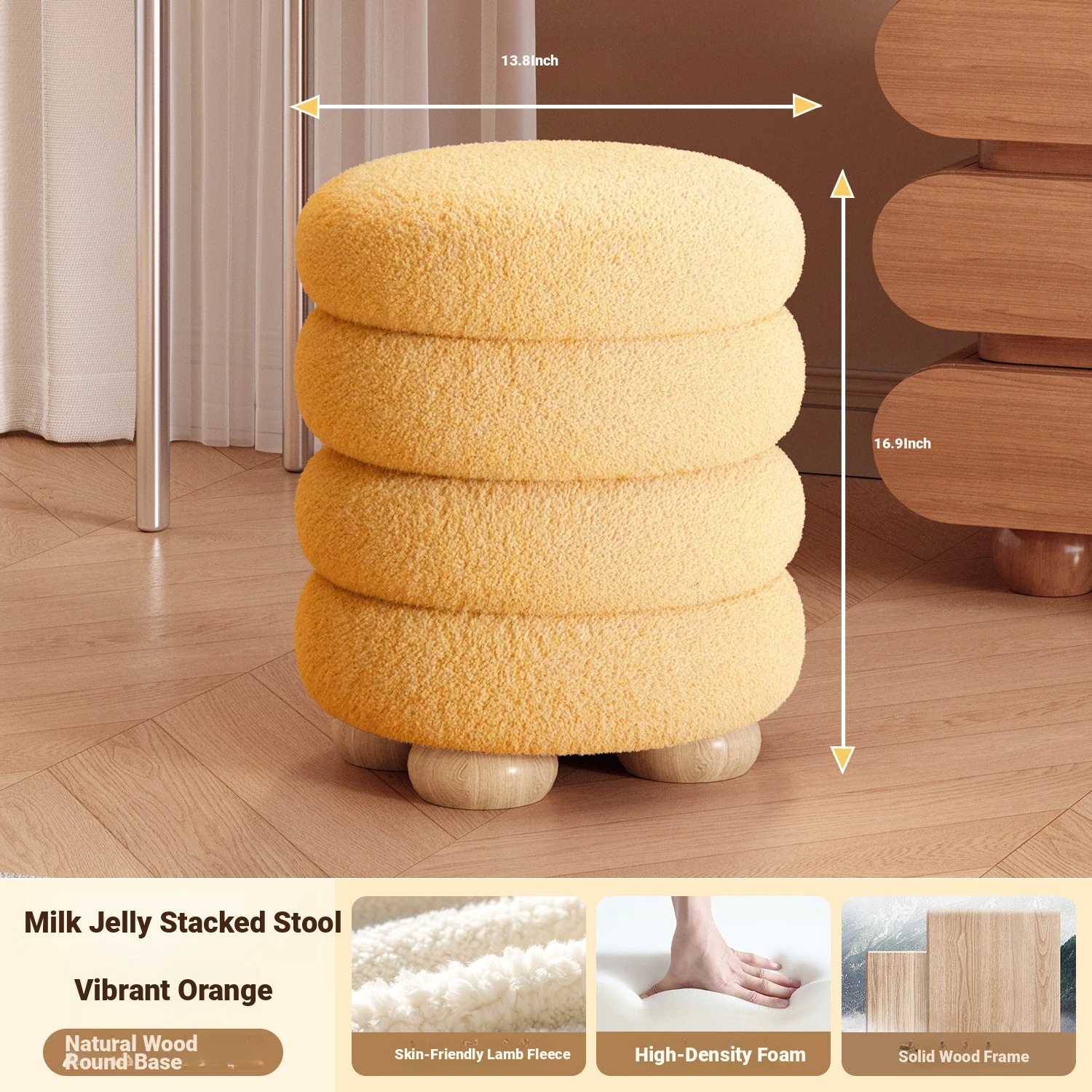 Frozen Stool-Vibrant Orange High Elastic Sponge [Solid Wood Frame]]⭐Three layers⭐