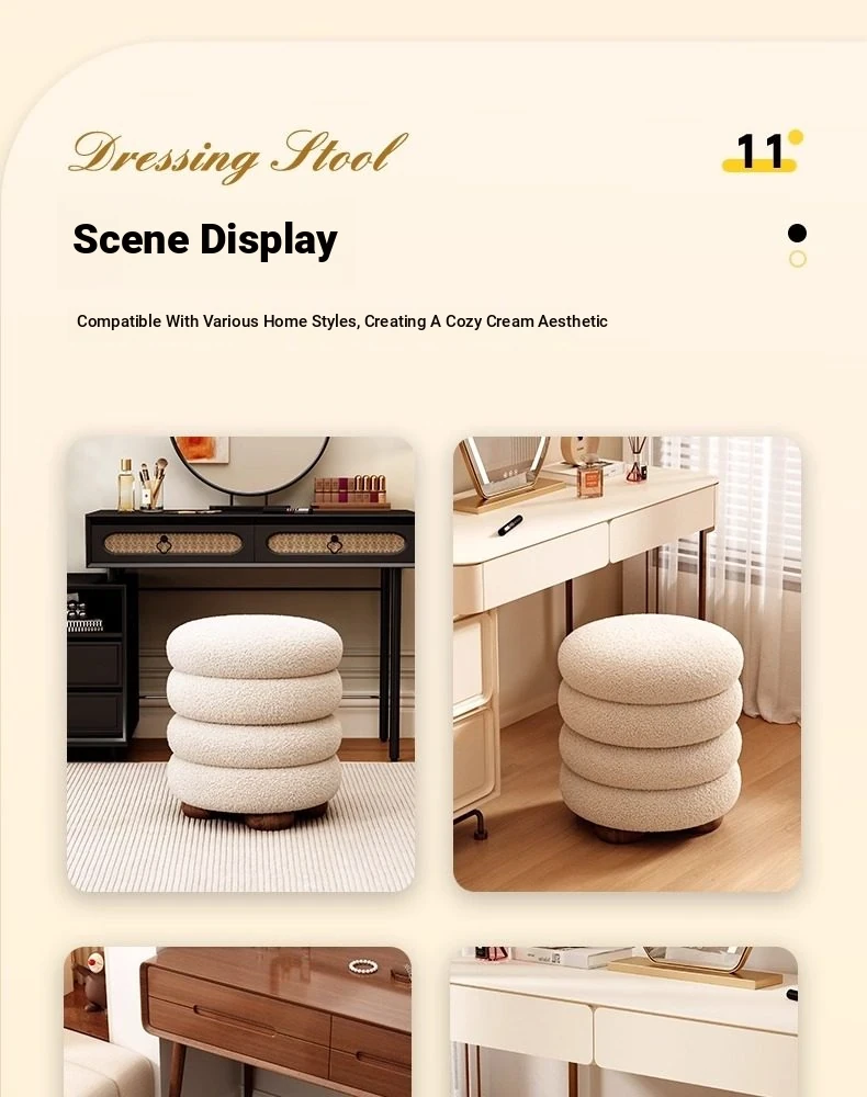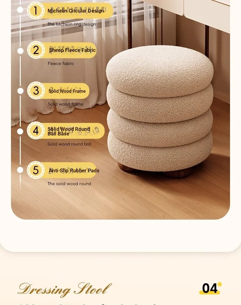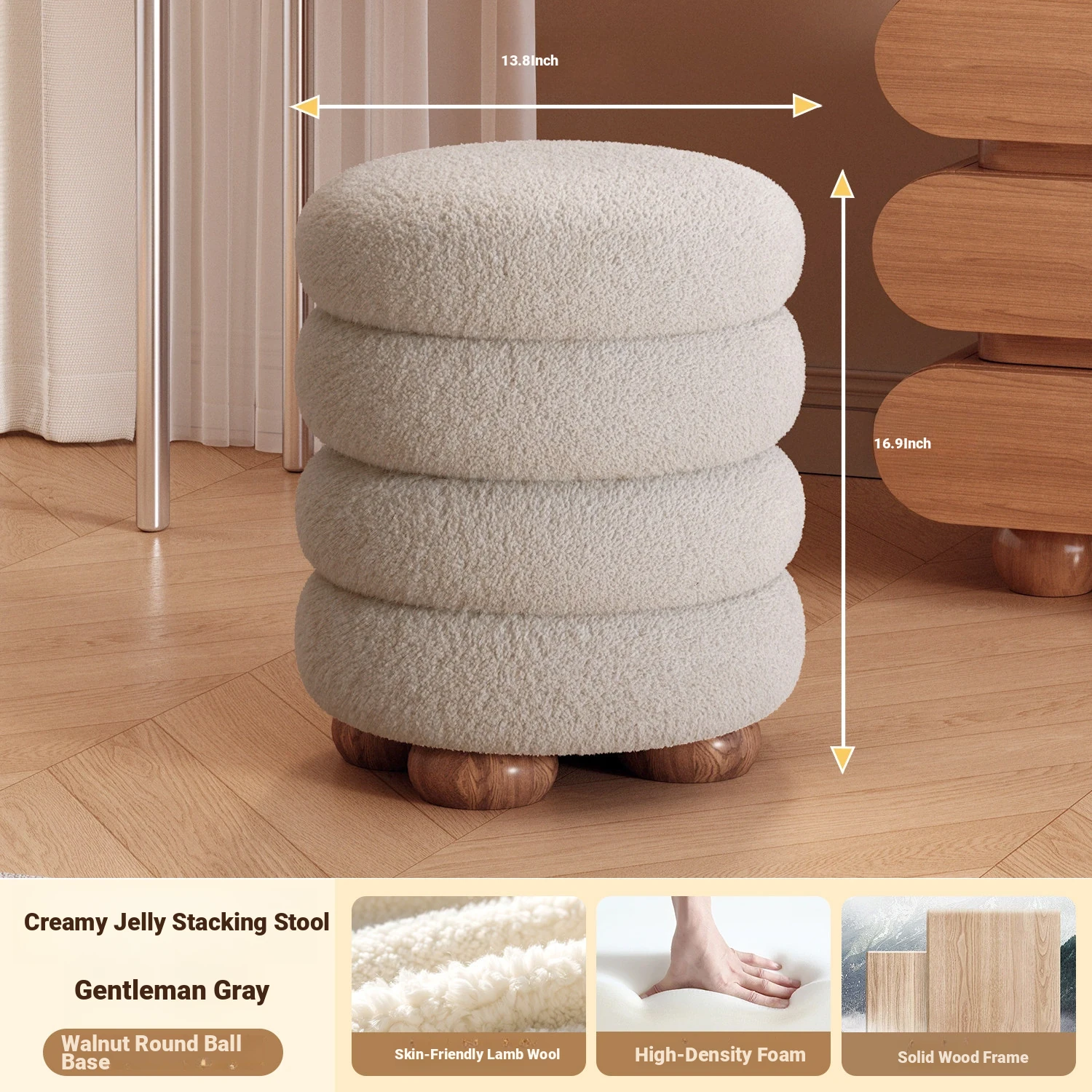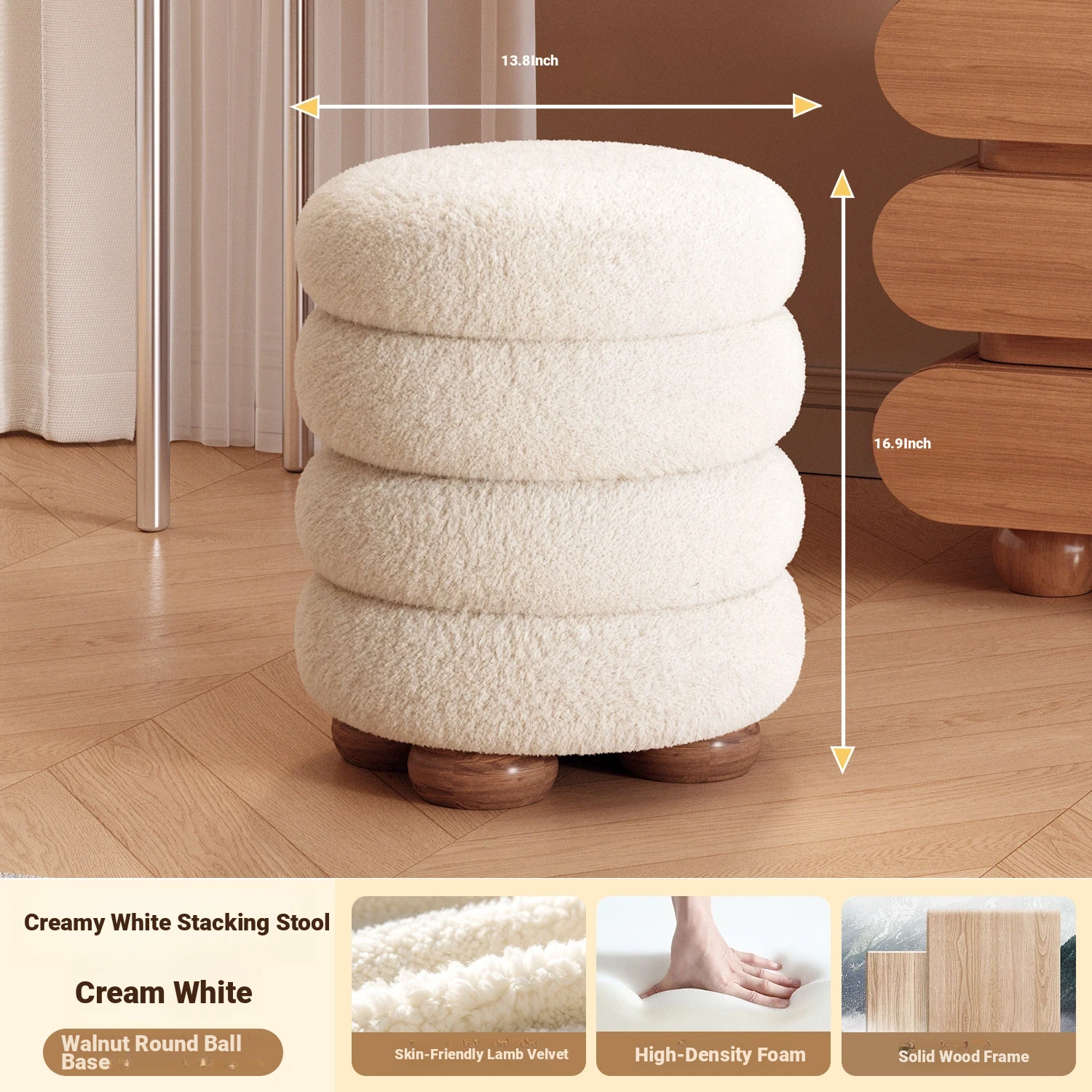 Frozen Stool-Cream White High Elastic Sponge [Walnut Ball Base]]⭐Four layers⭐