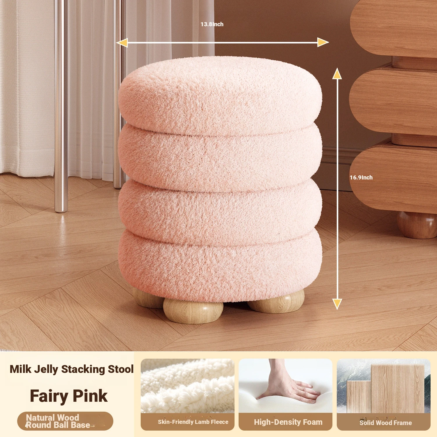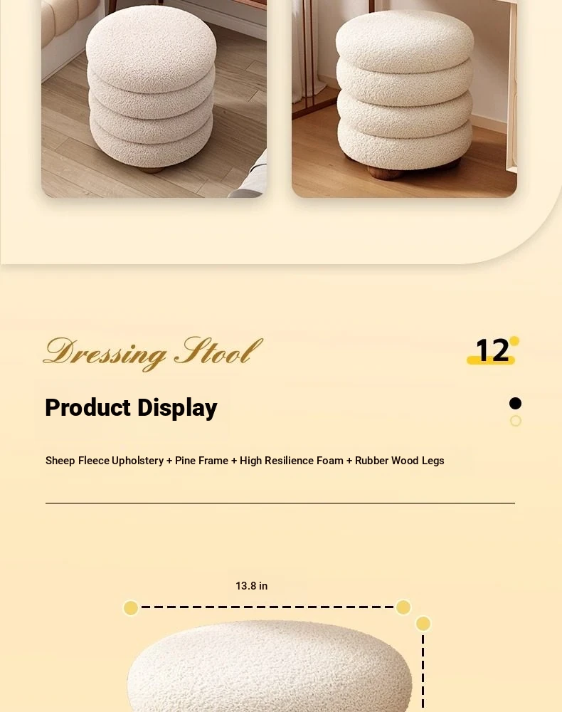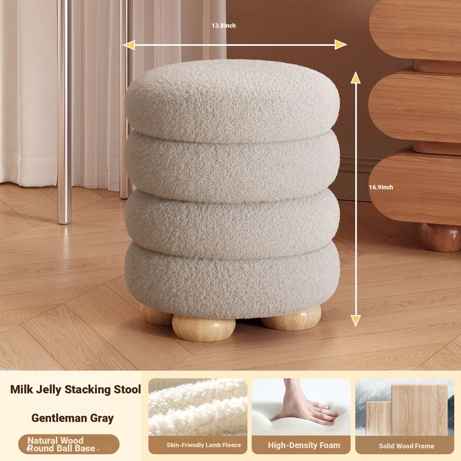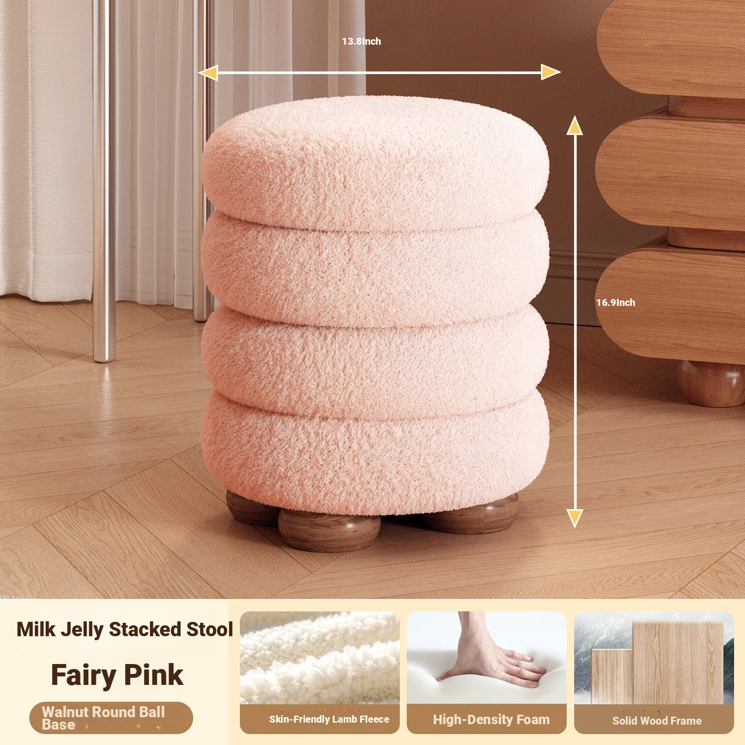 Frozen Stool-Cream White High Elastic Sponge [Walnut Ball Base]]⭐Four layers⭐