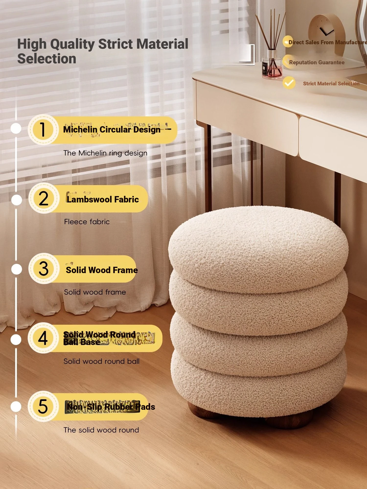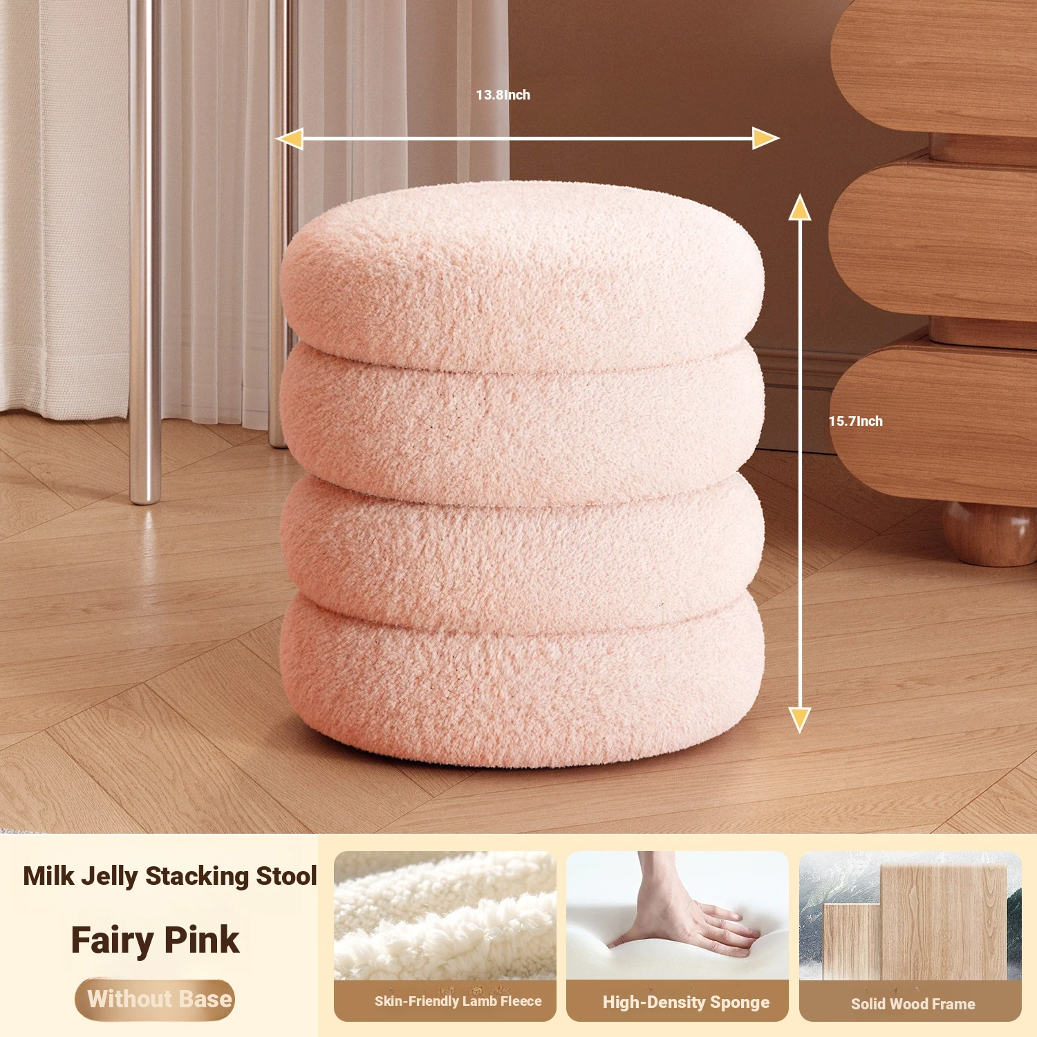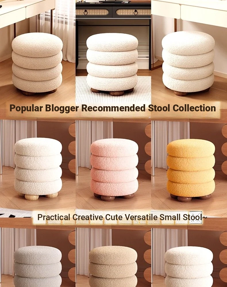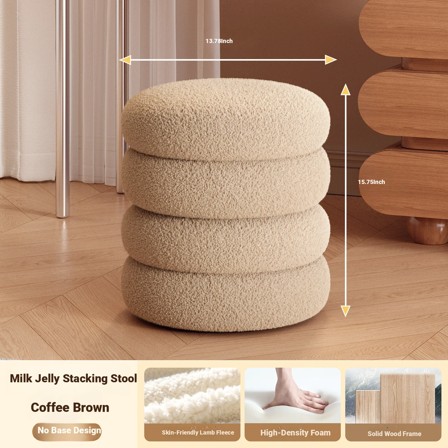 Frozen Stool-Cream White High Elastic Sponge [Walnut Ball Base]]⭐Four layers⭐