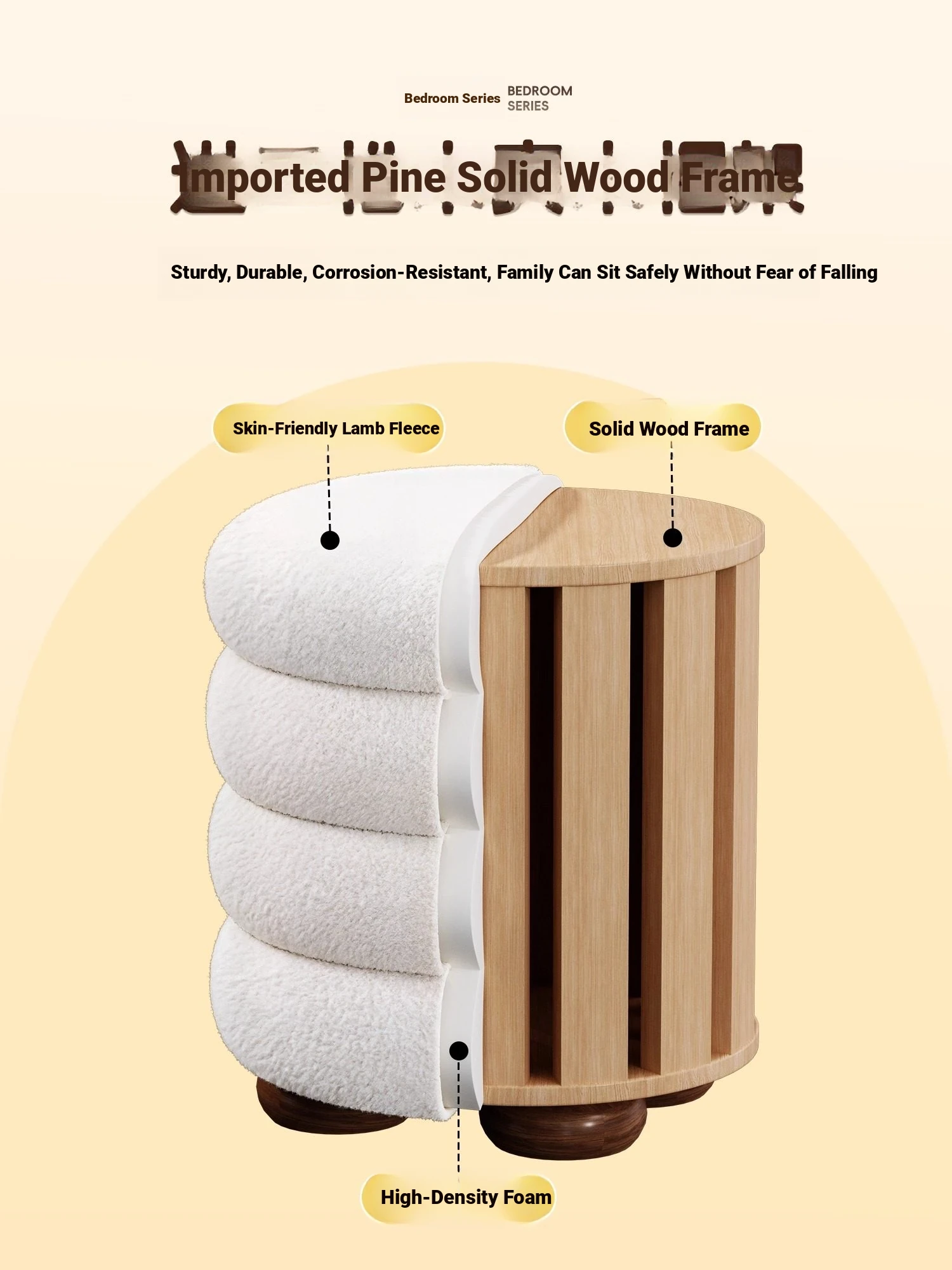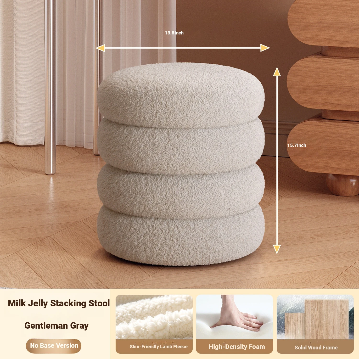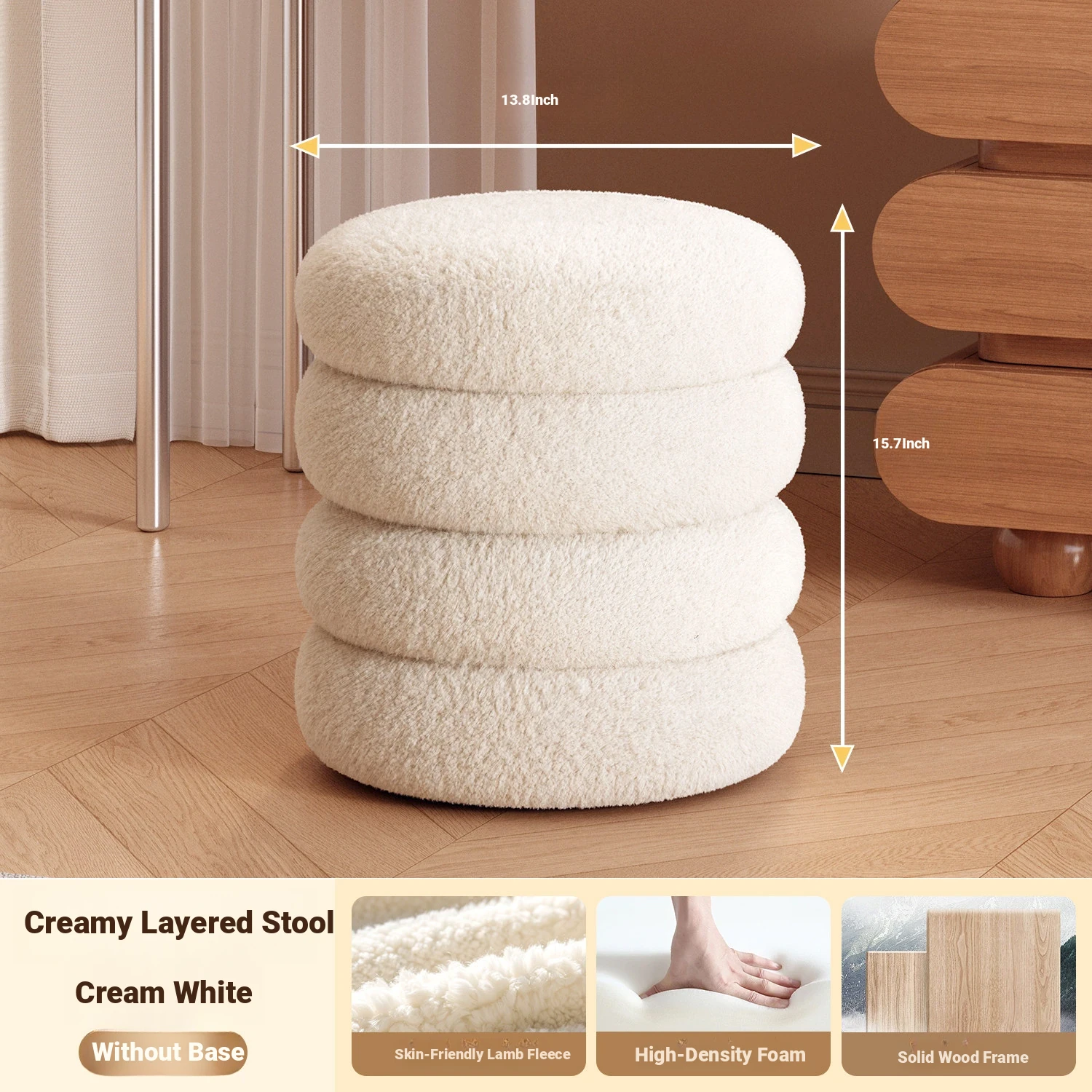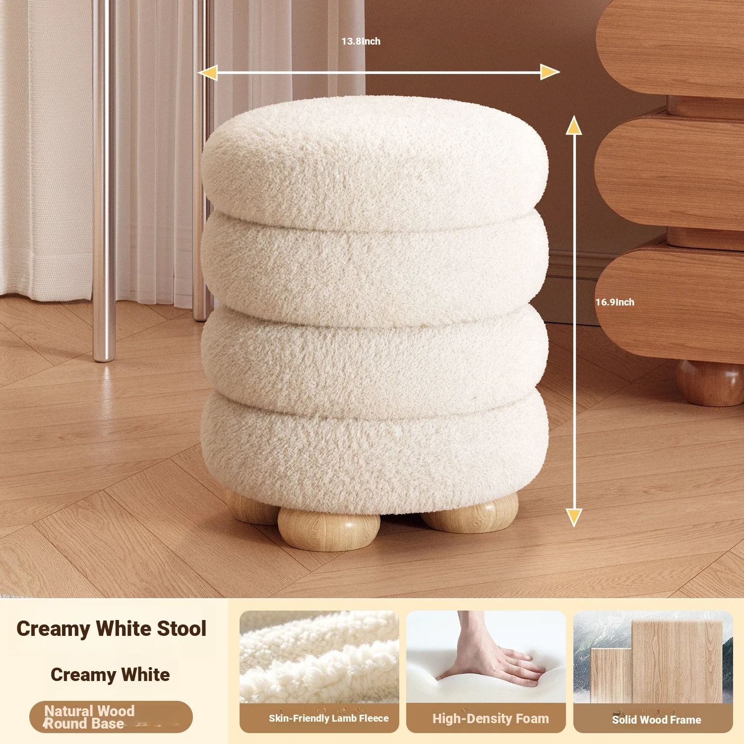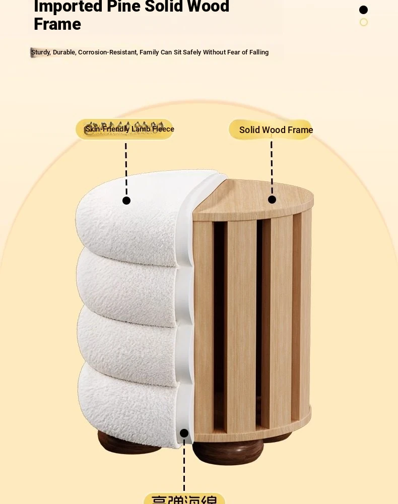 Frozen Stool-Cream White High Elastic Sponge [Solid Wood Frame]]⭐Three layers⭐