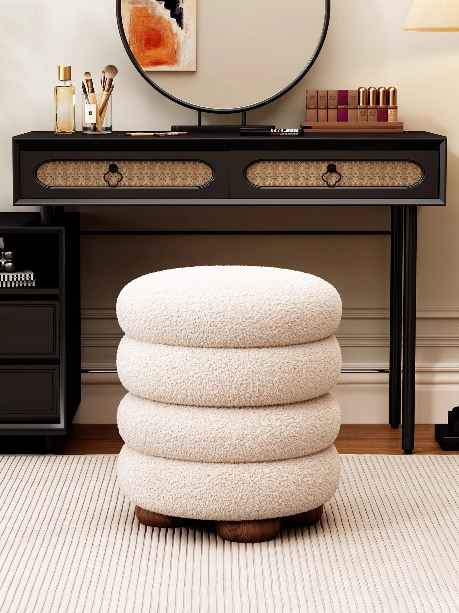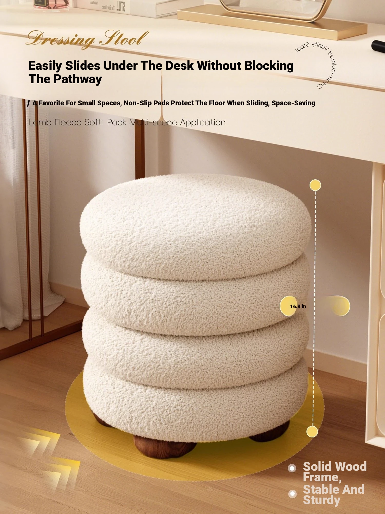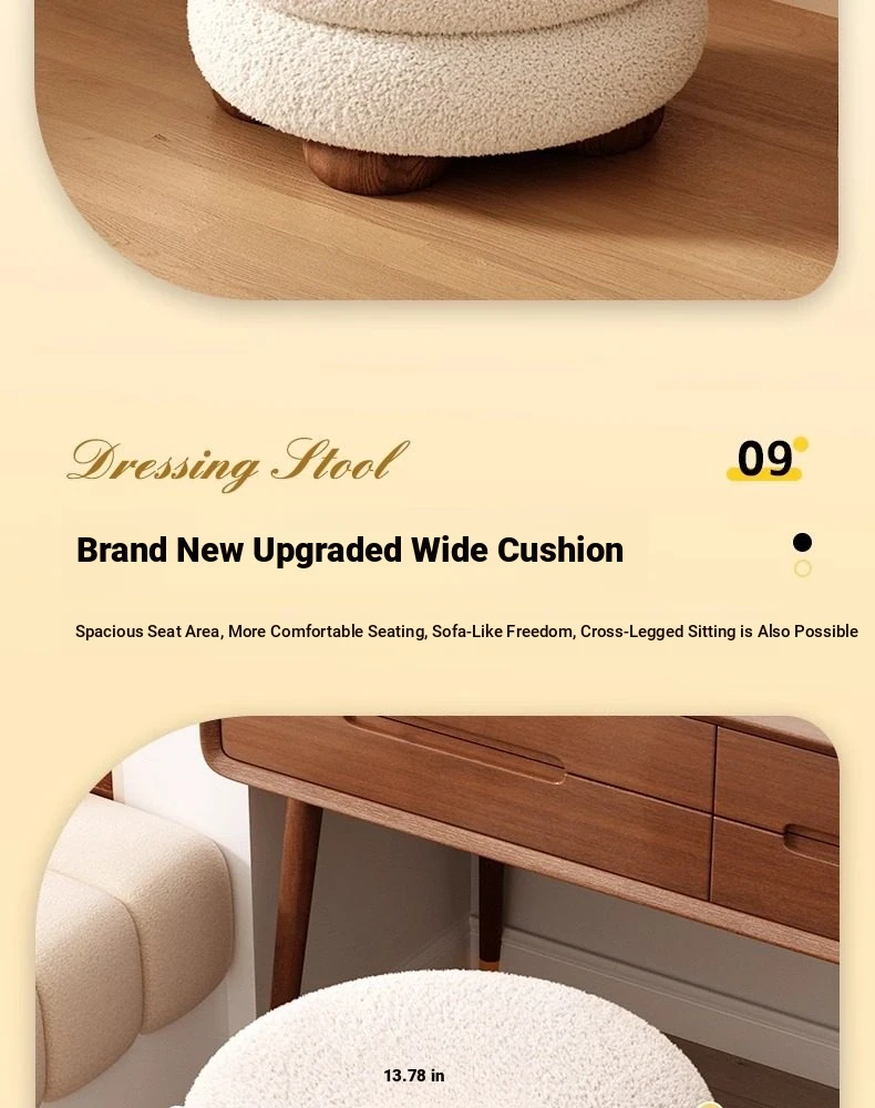 Elegant Vanity Stool for Women - Luxe Makeup Chair for Bedroom and Dressing Room, Solid Wood, Perfect for Nail Art and Beauty Routines