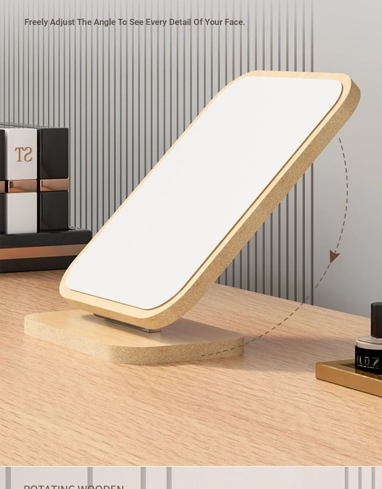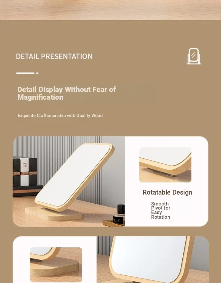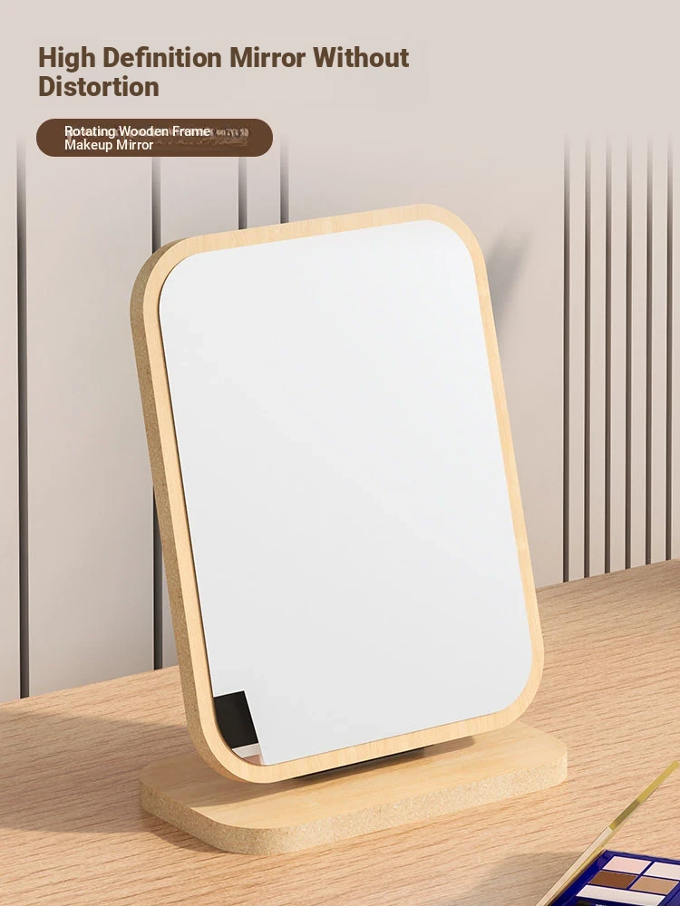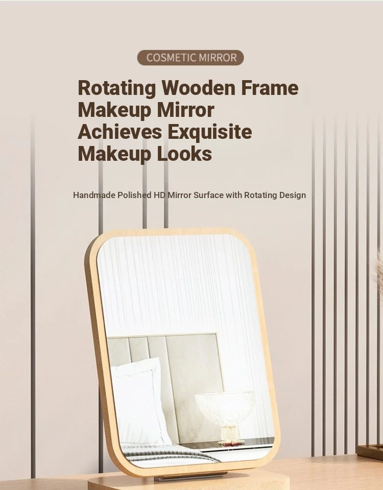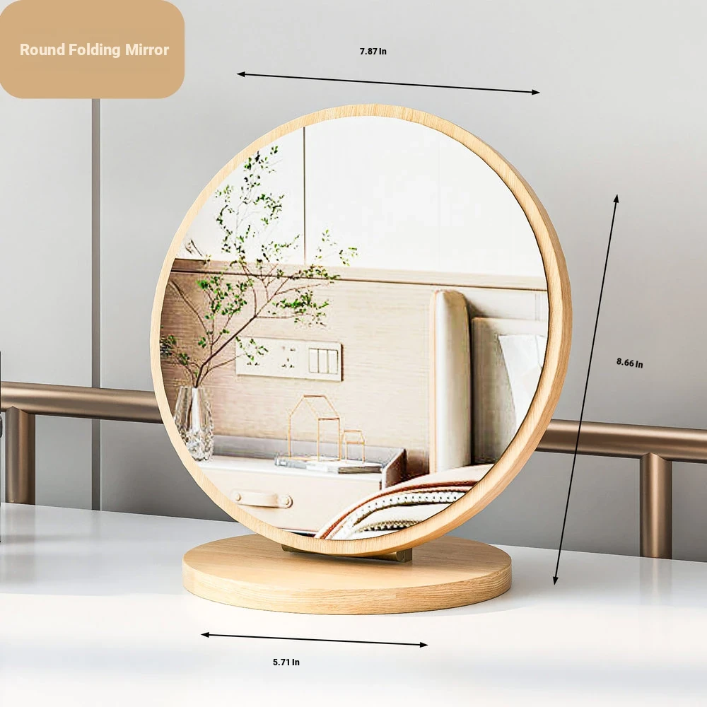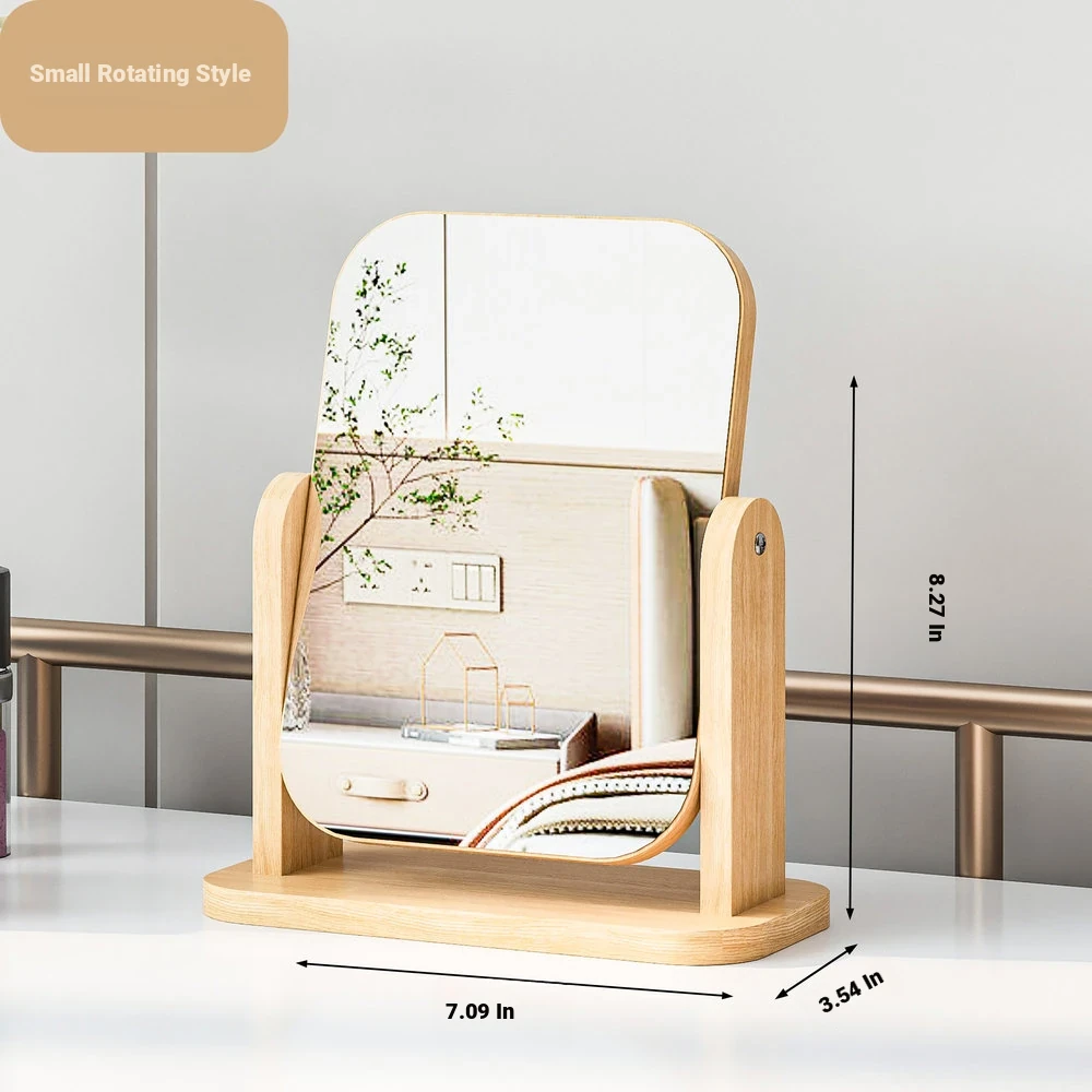 Elegant Wooden Element Vanity Mirror - Compact Rotatable Makeup Mirror for Home & Dorm Use, Perfect for Students and On-the-Go Touch-Ups