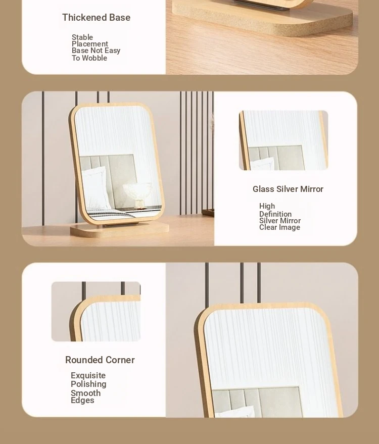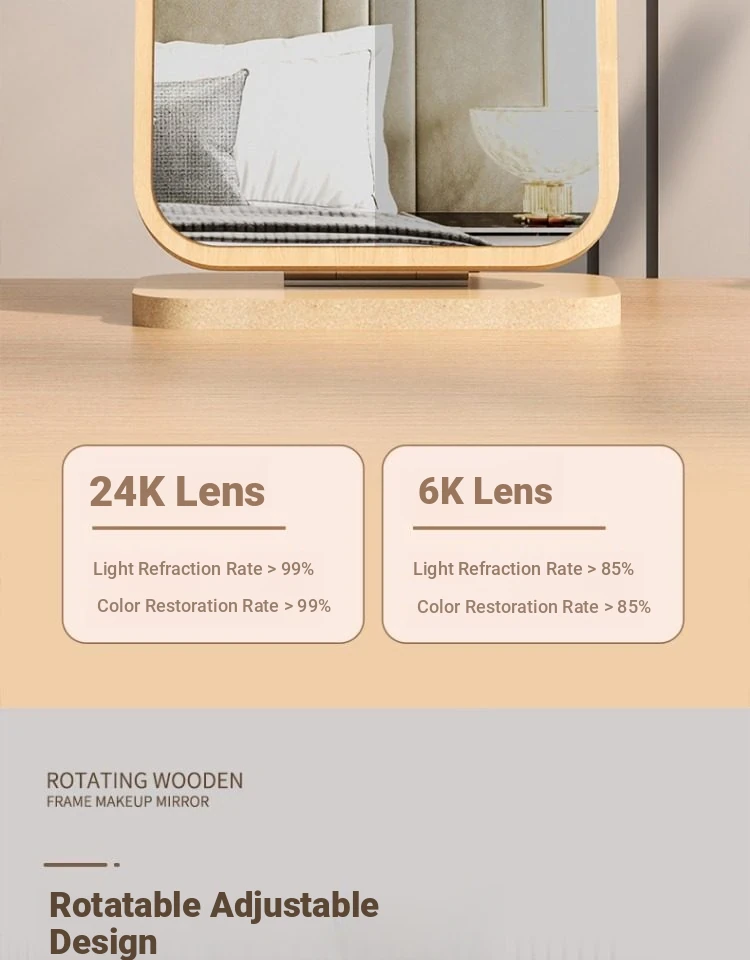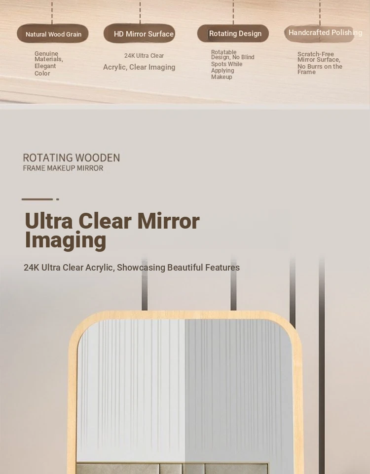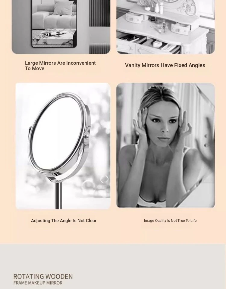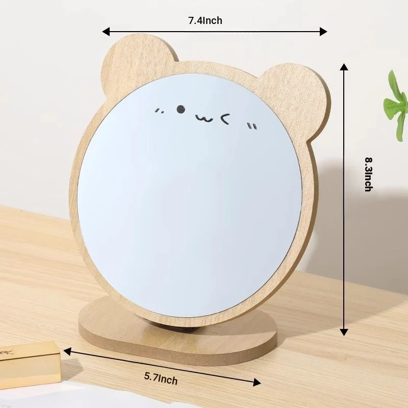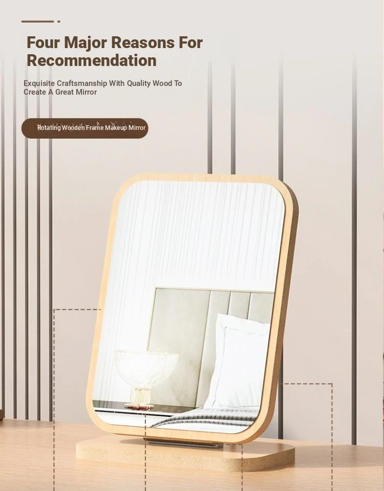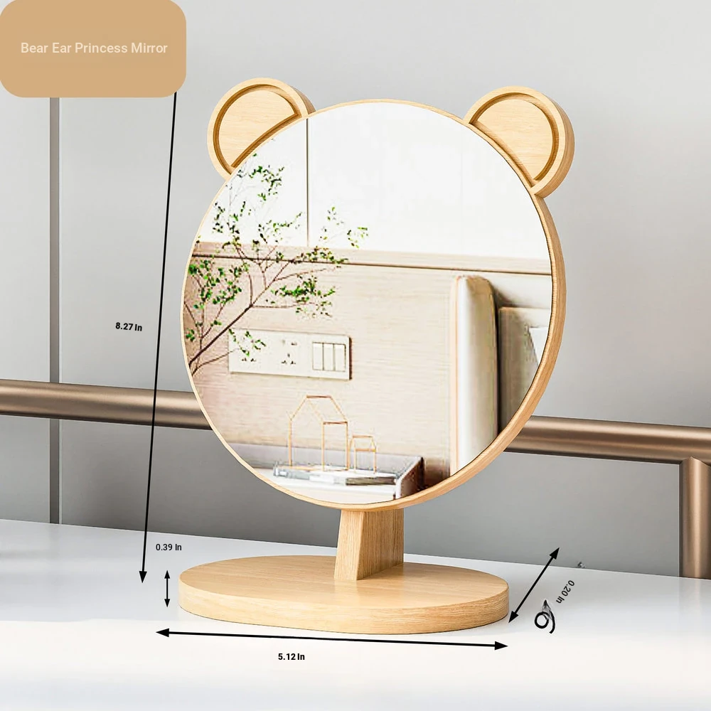 Elegant Wooden Element Vanity Mirror - Compact Rotatable Makeup Mirror for Home & Dorm Use, Perfect for Students and On-the-Go Touch-Ups