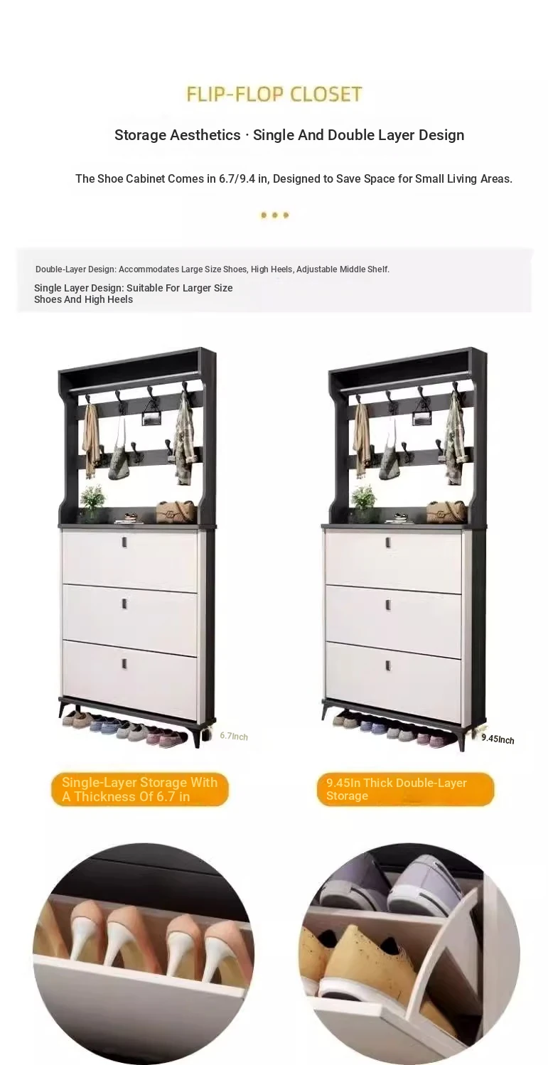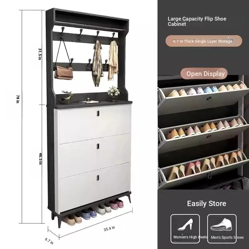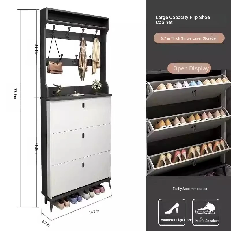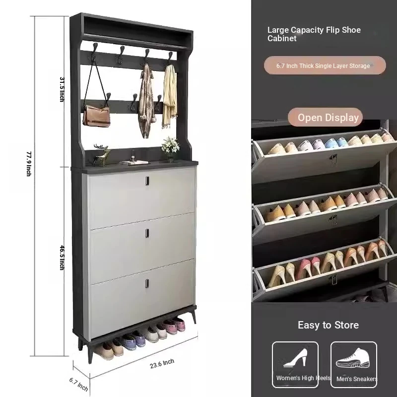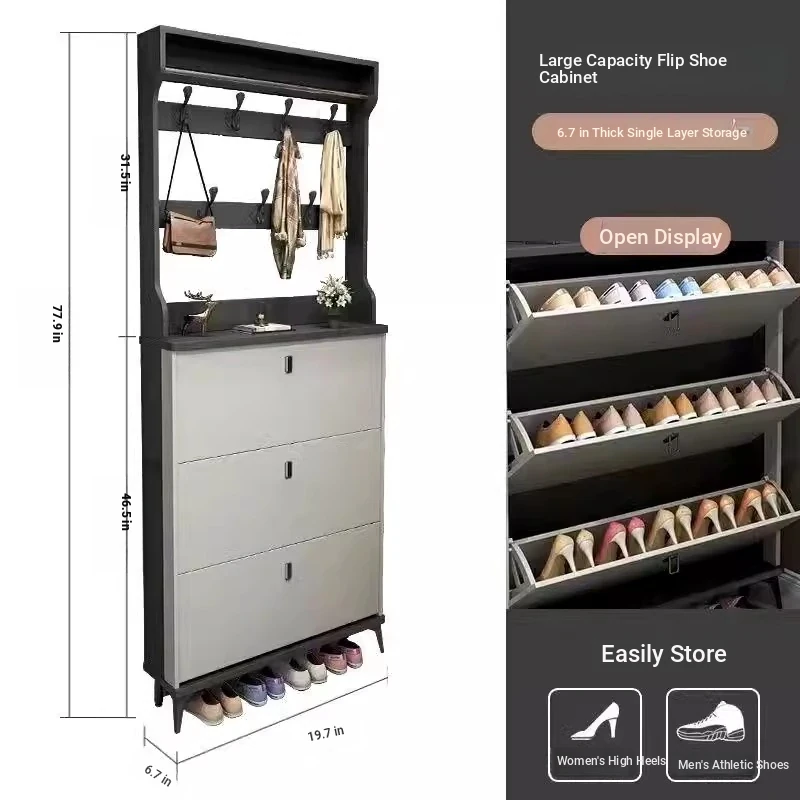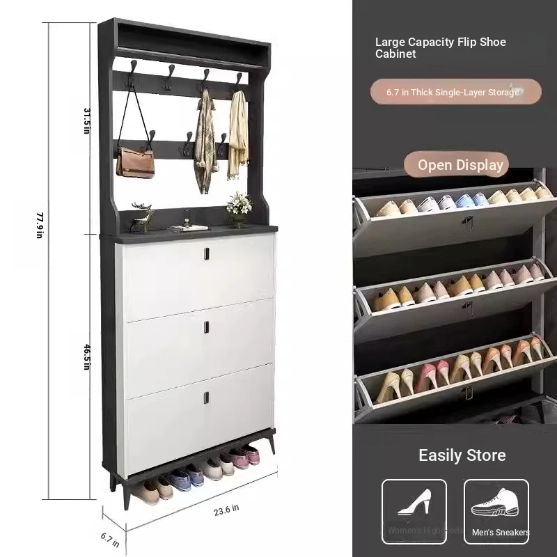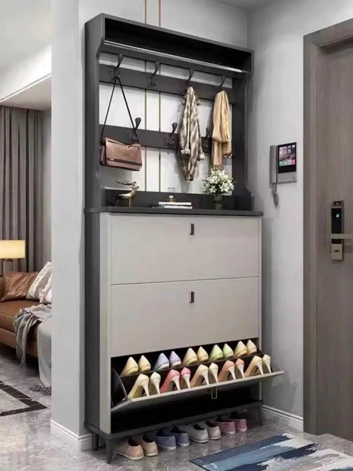 2024年最新!超薄デザインの玄関収納キャビネット - スペースを有効活用し、スタイリッシュな玄関を演出!狭いエントランスにもぴったりな多機能シューズキャビネット。