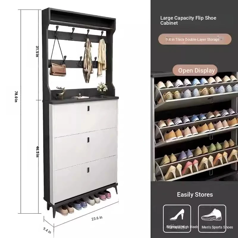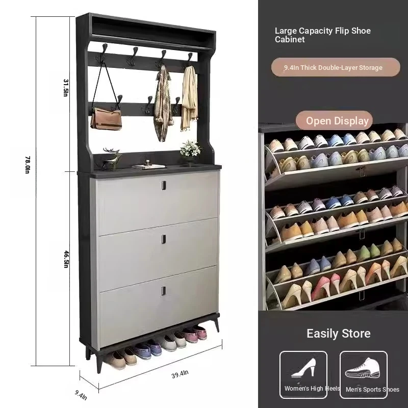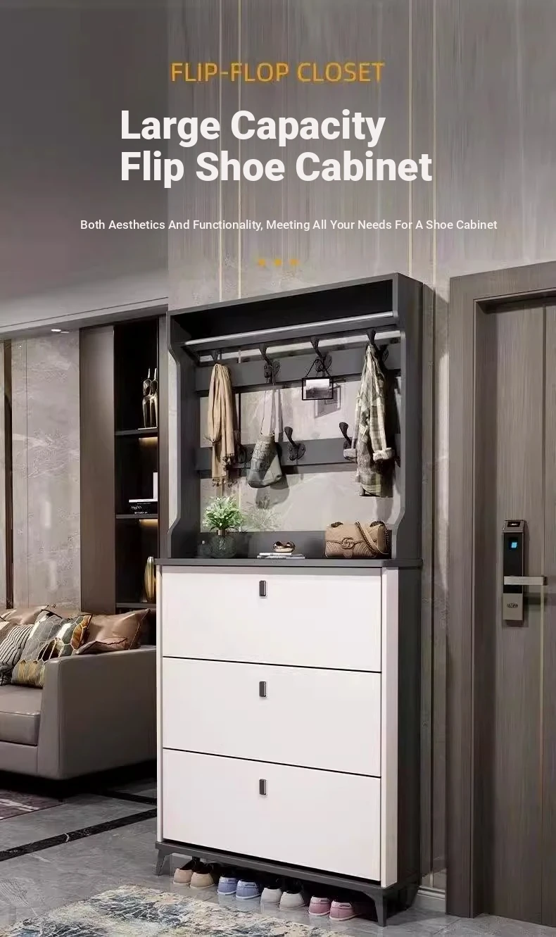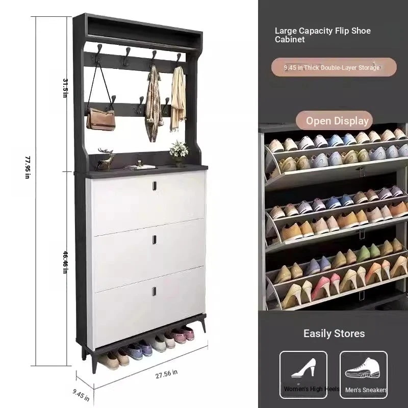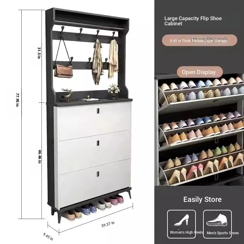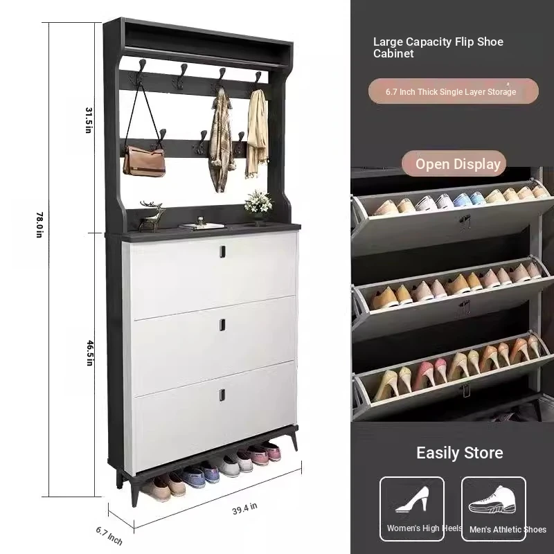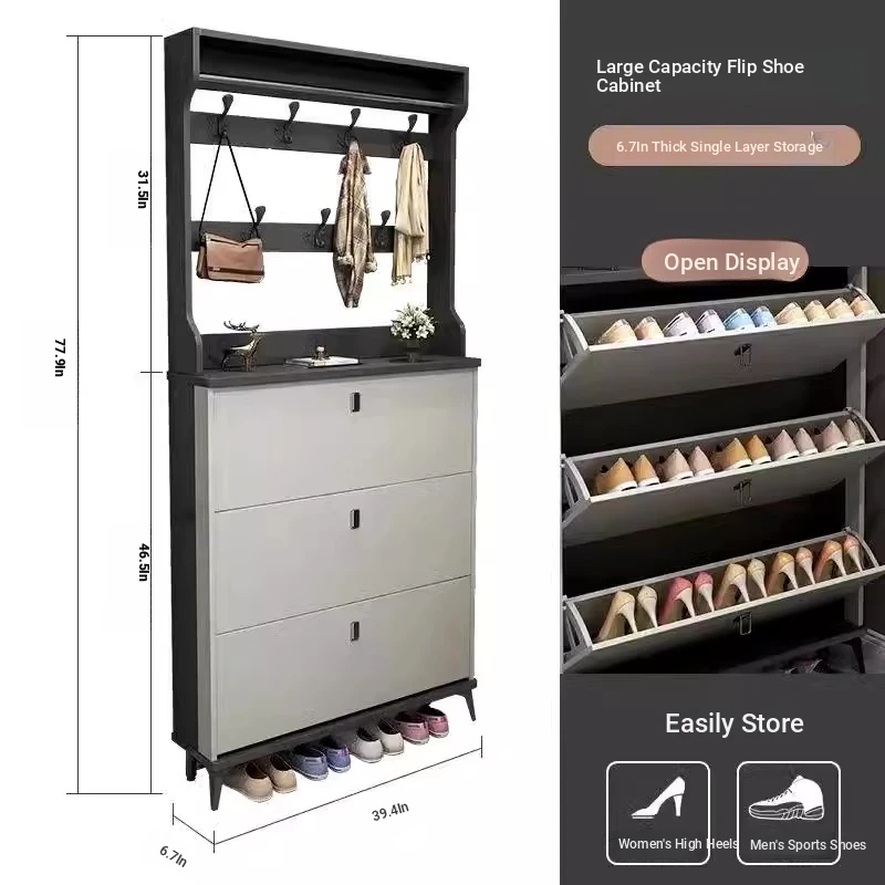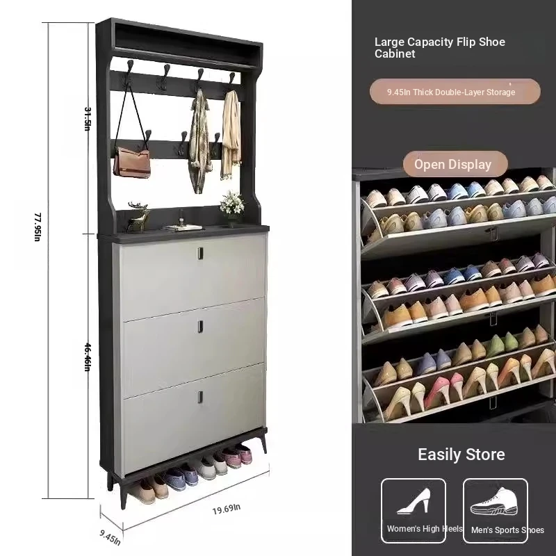 2024年最新!超薄デザインの玄関収納キャビネット - スペースを有効活用し、スタイリッシュな玄関を演出!狭いエントランスにもぴったりな多機能シューズキャビネット。