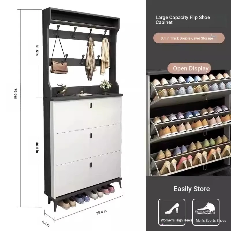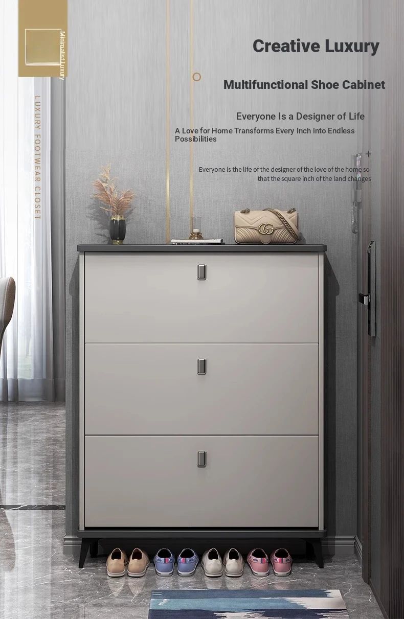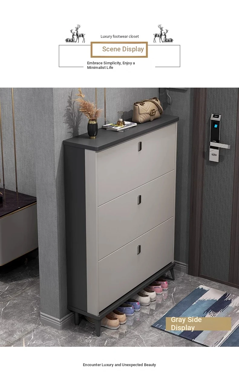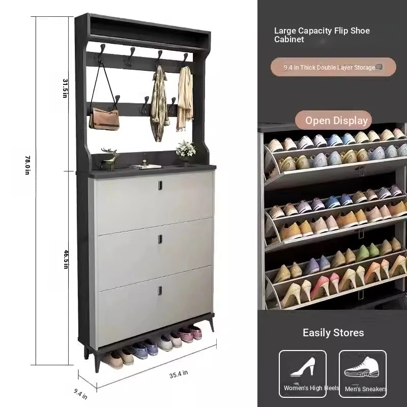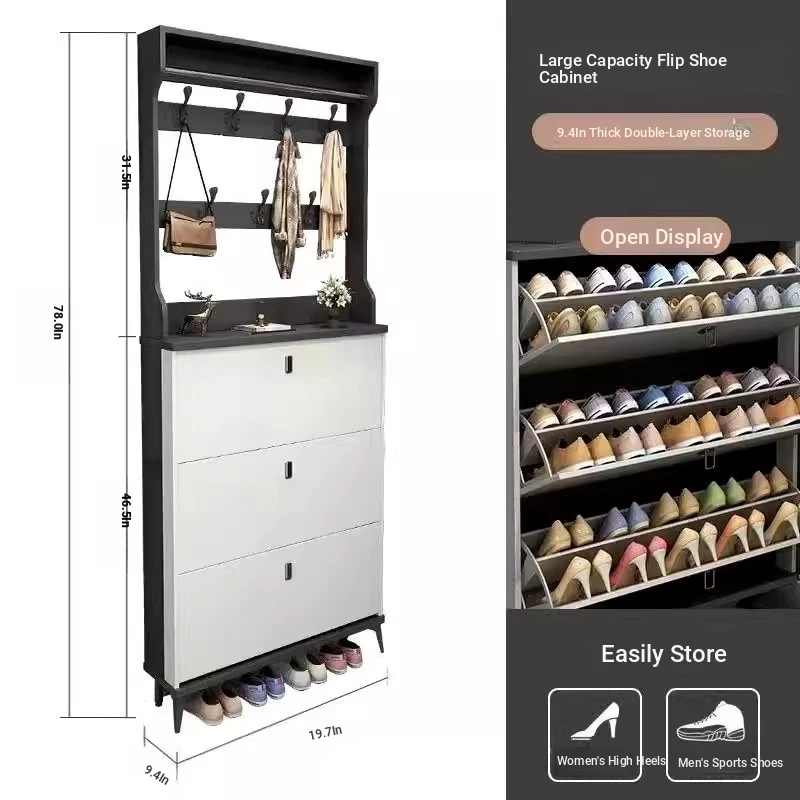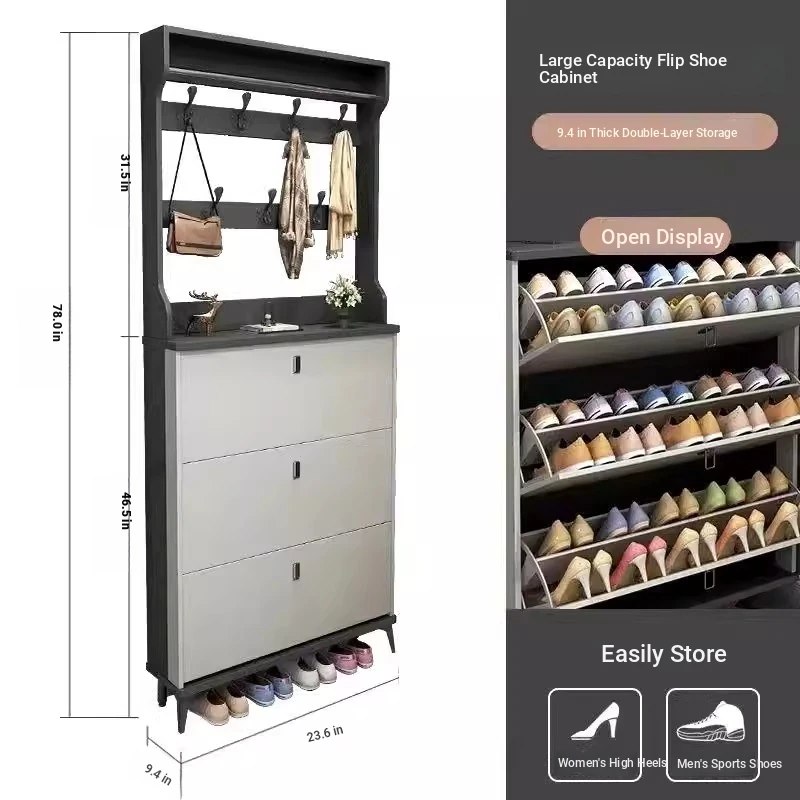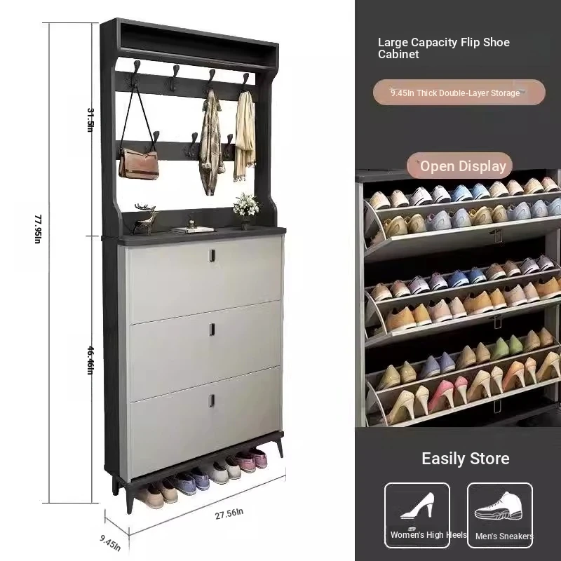 2024年最新!超薄デザインの玄関収納キャビネット - スペースを有効活用し、スタイリッシュな玄関を演出!狭いエントランスにもぴったりな多機能シューズキャビネット。
