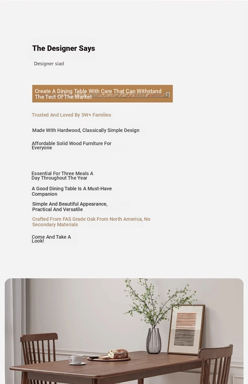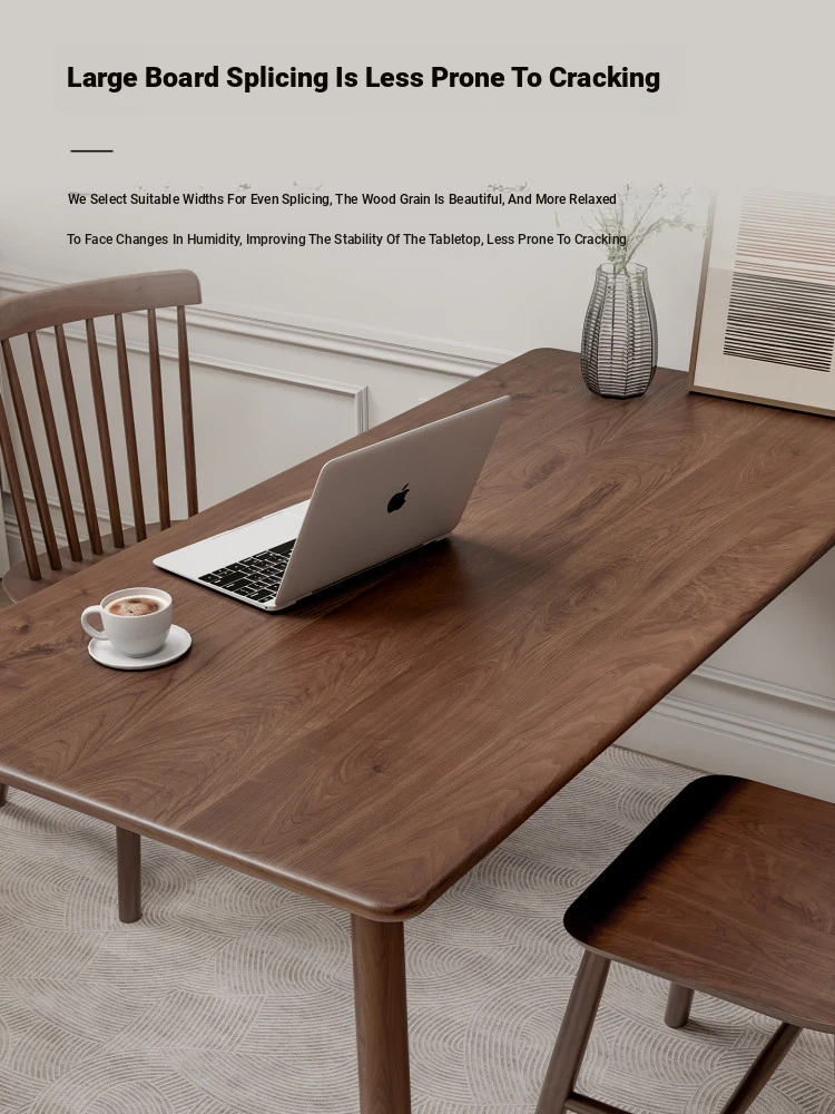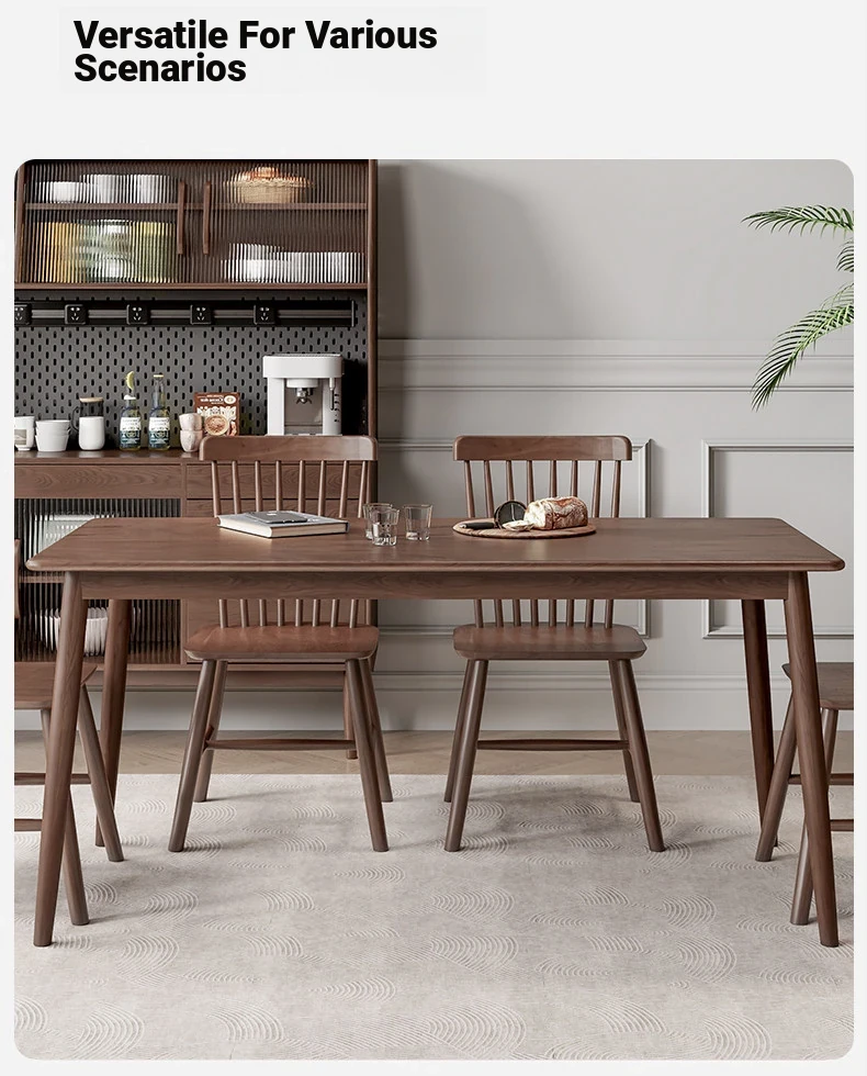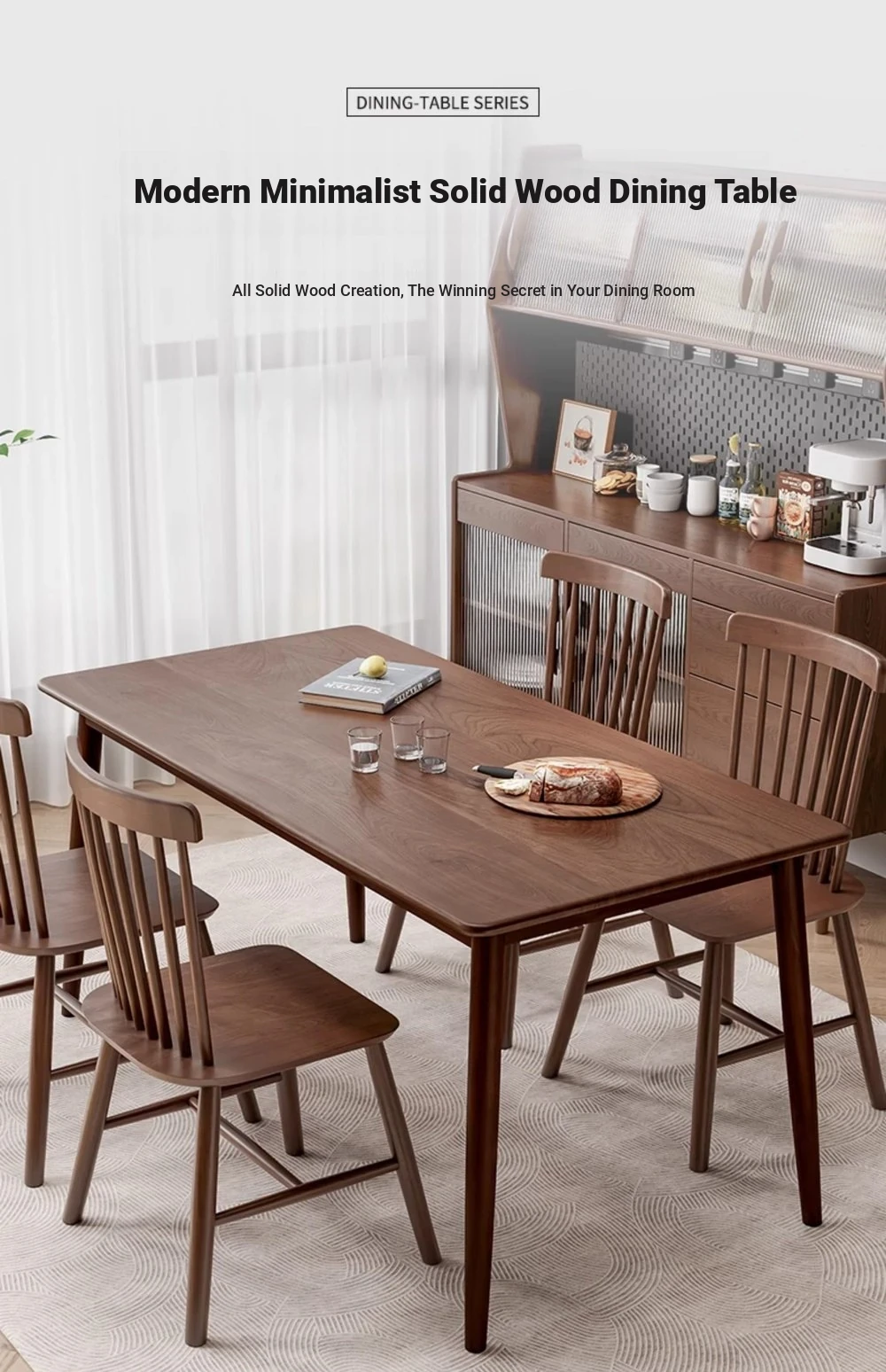 Minimalist Solid Wood Dining Table - Nordic Style Long Rectangular Table for Small Spaces, Deep Brown Finish, Perfect for Japanese Home Decor