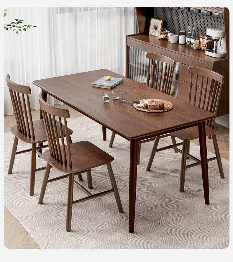 [Walnut Color] Solid Wood Dining Table ☆ 160*80 ☆ 4 Windsor Chairs