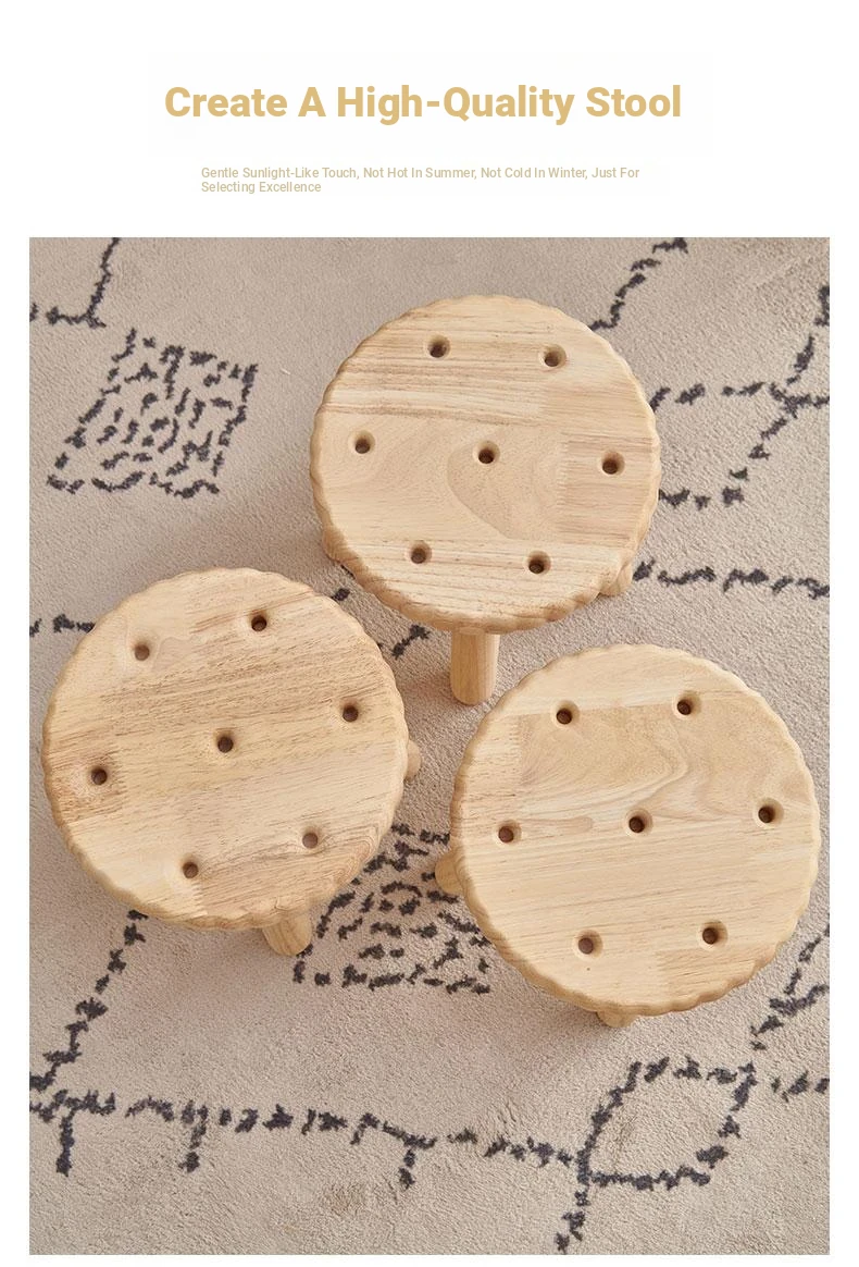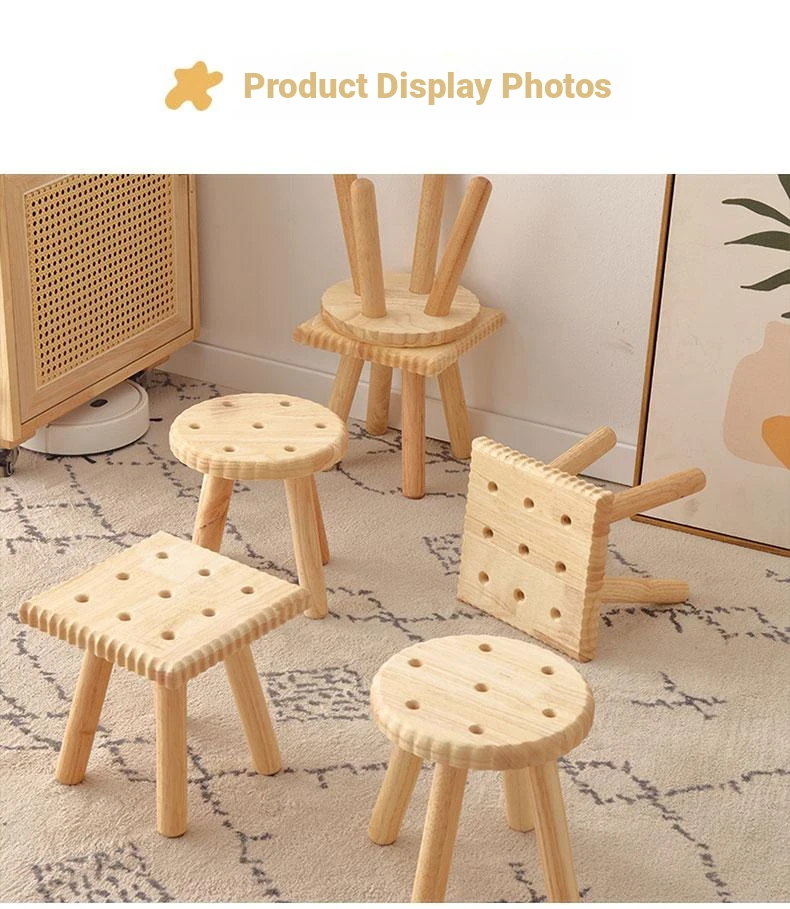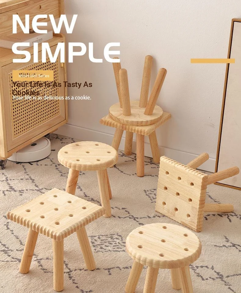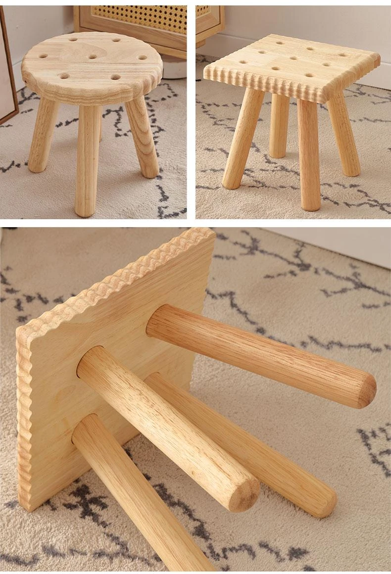 Modern Minimalist Wooden Stool for Home Use - Round and Square Benches, Sofa Stools, Low Seating for Kids and Adults, Perfect for Living Room Decor
