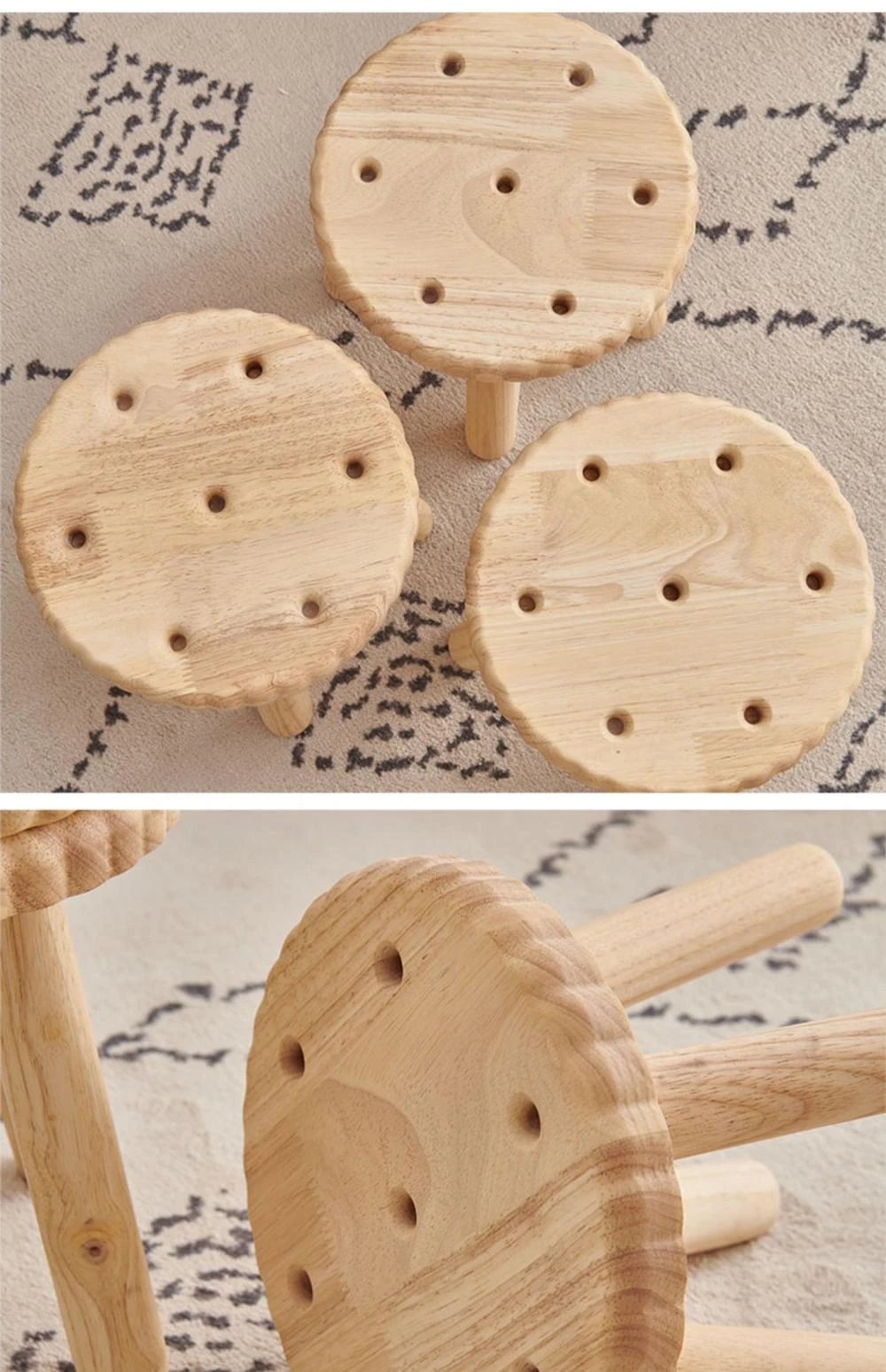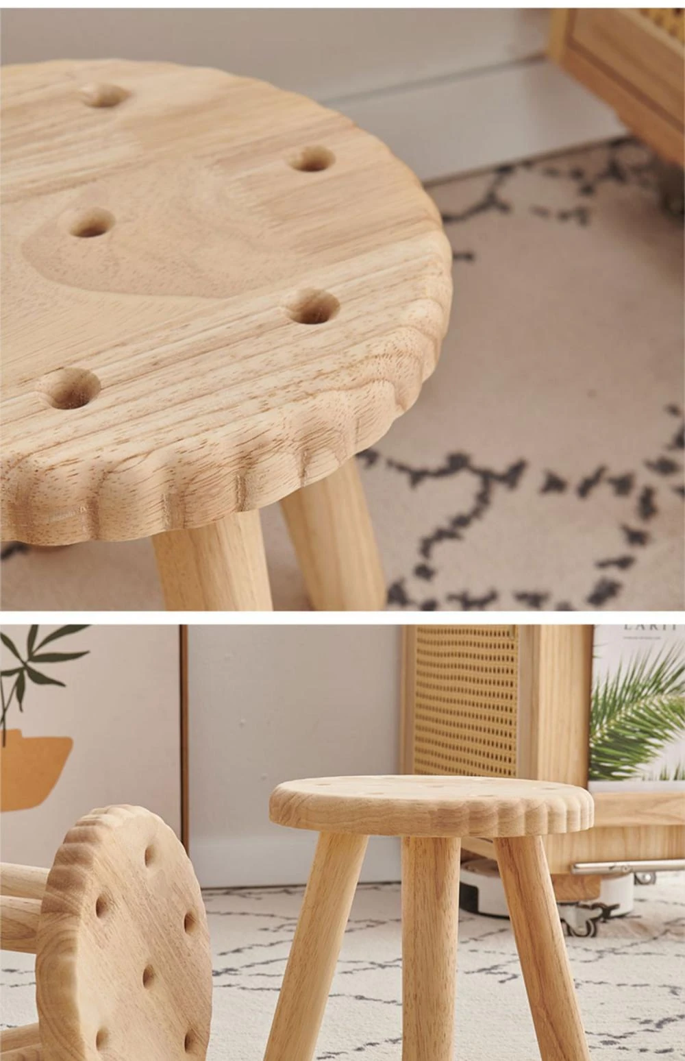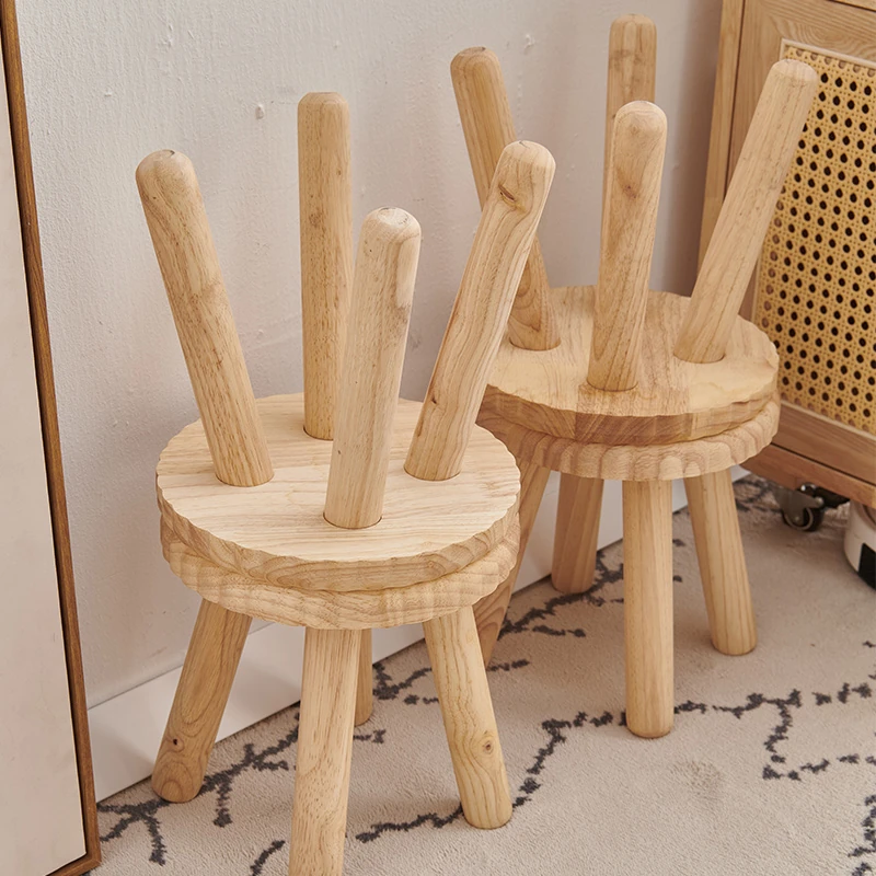 Modern Minimalist Wooden Stool for Home Use - Round and Square Benches, Sofa Stools, Low Seating for Kids and Adults, Perfect for Living Room Decor