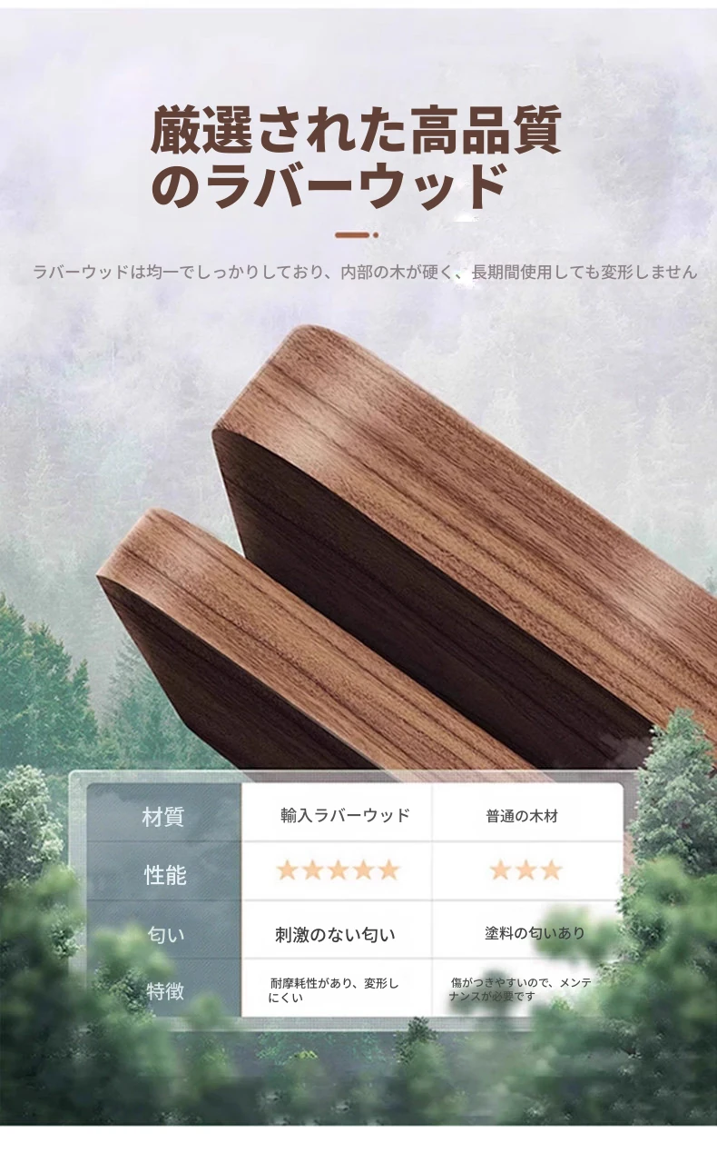 アップグレード版【強化ラバーウッド】ナチュラル色脚—ダークグリーン座面